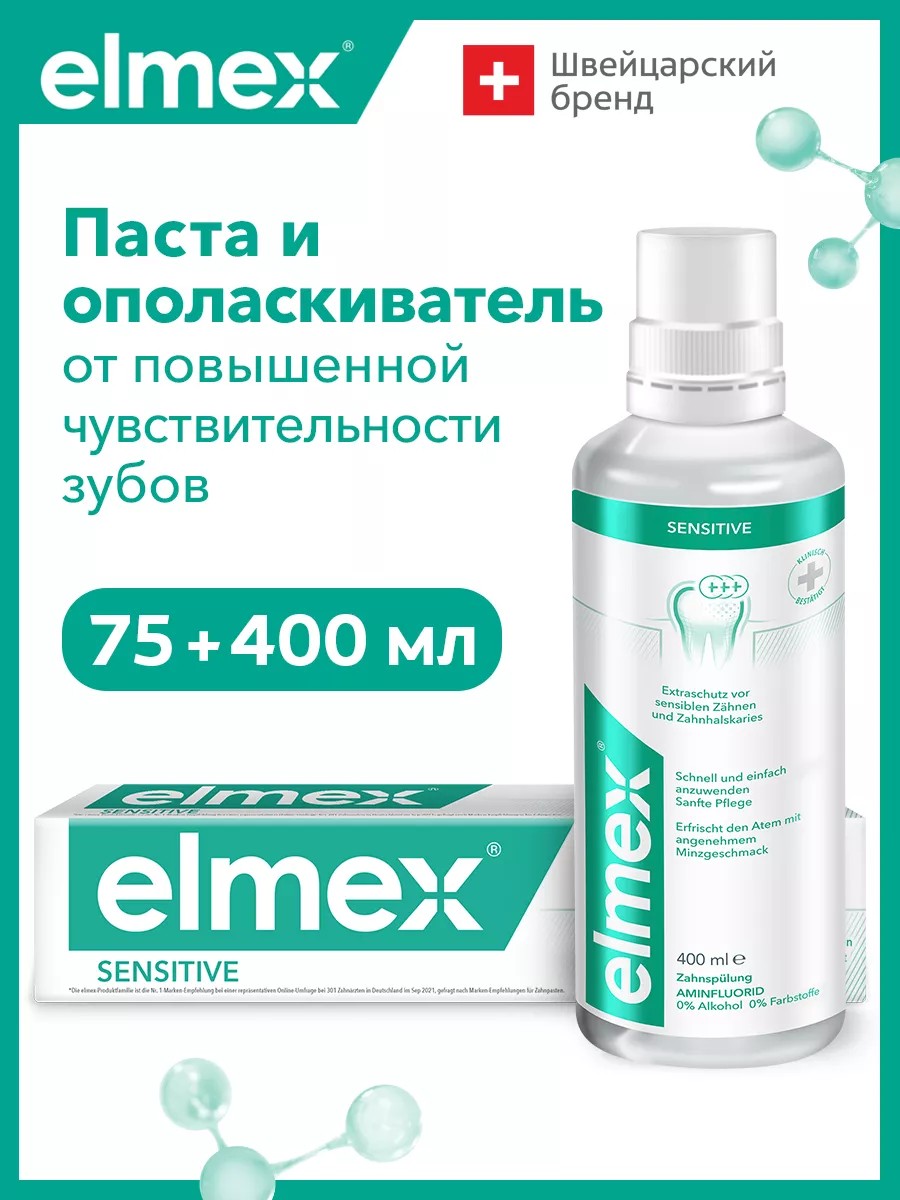 elmex Набор для чувствительных зубов:ополаскиватель и зубная паста