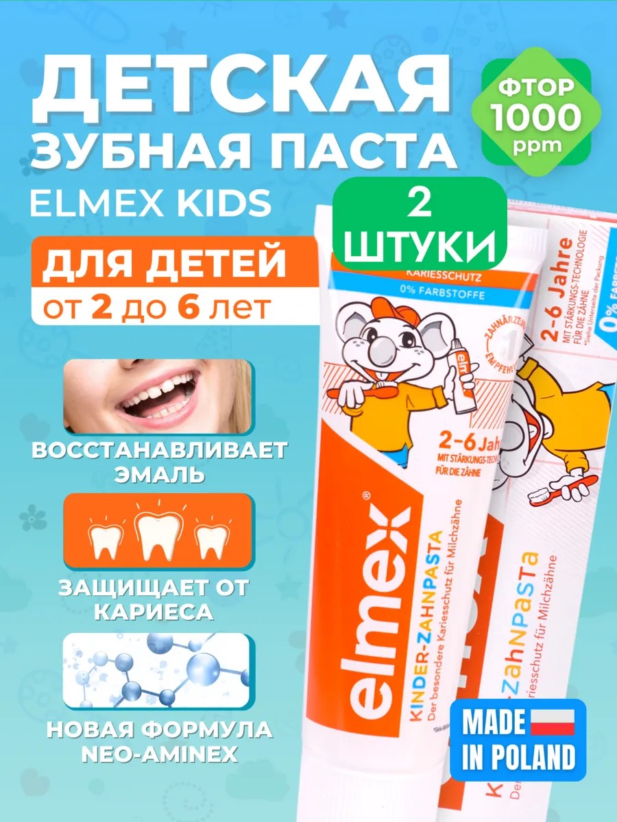 elmex Зубная паста детская защита от кариеса 2-6 лет 2 штуки