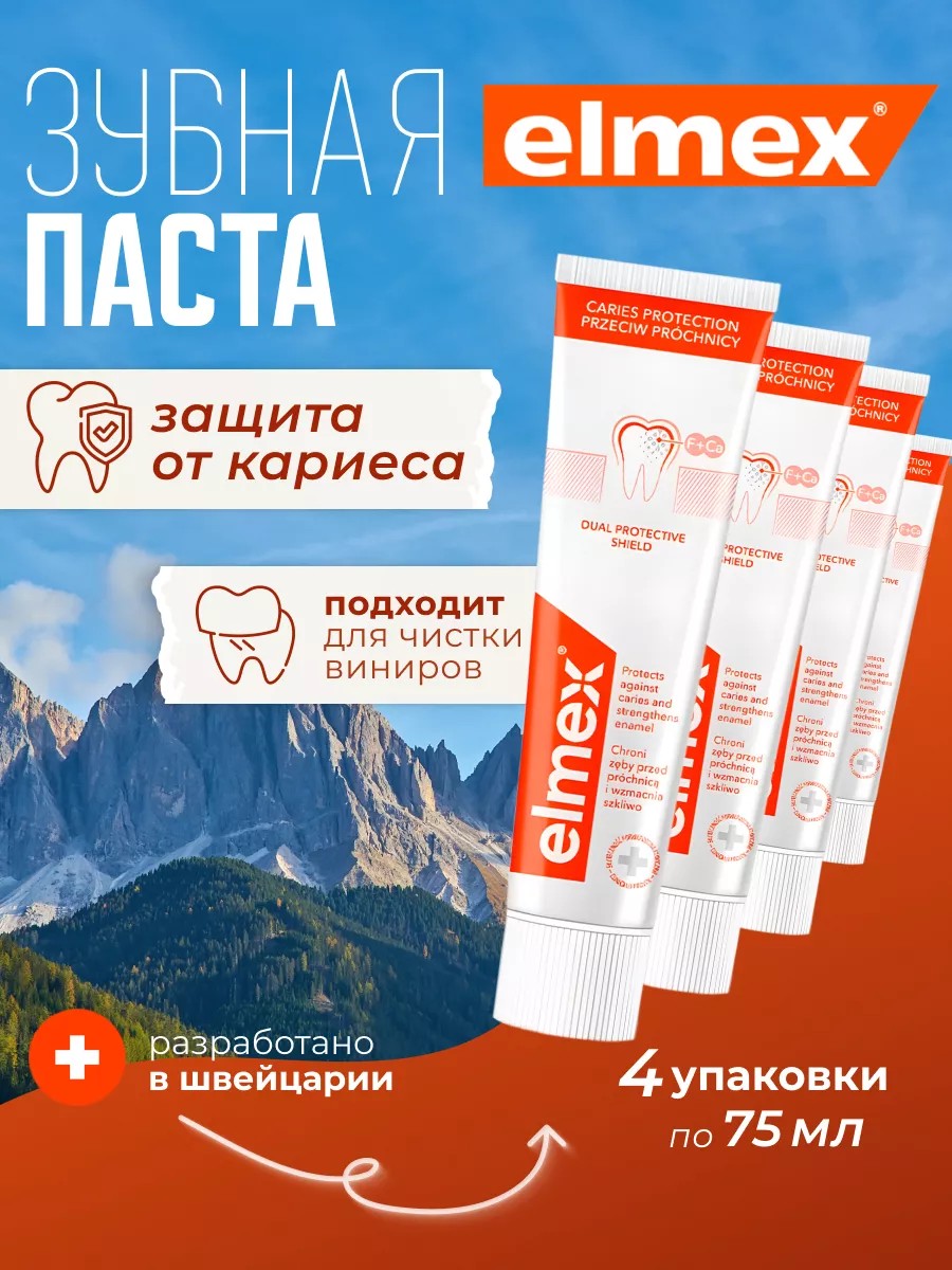 elmex Зубная паста от кариеса и укрепление эмали 75мл 4 шт