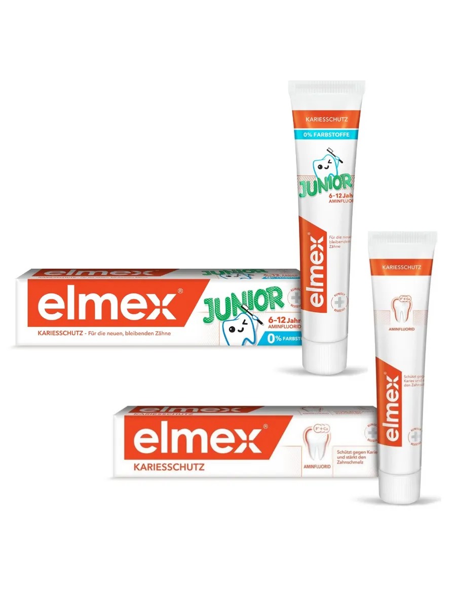 | Package contents | Elmex Junior children's toothpaste for children from 6 to 12 years old, 75 ml; Colgate Elmex toothpaste with caries protection, 75 ml |