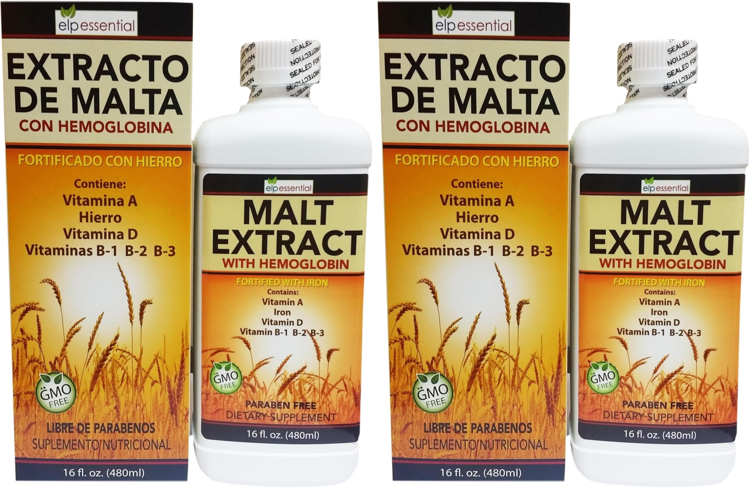 ELP ESSENTIAL Extracto de Malta Con Hemoglobina Fortificado con Hierro 16oz (450ml) (Pack of 2)