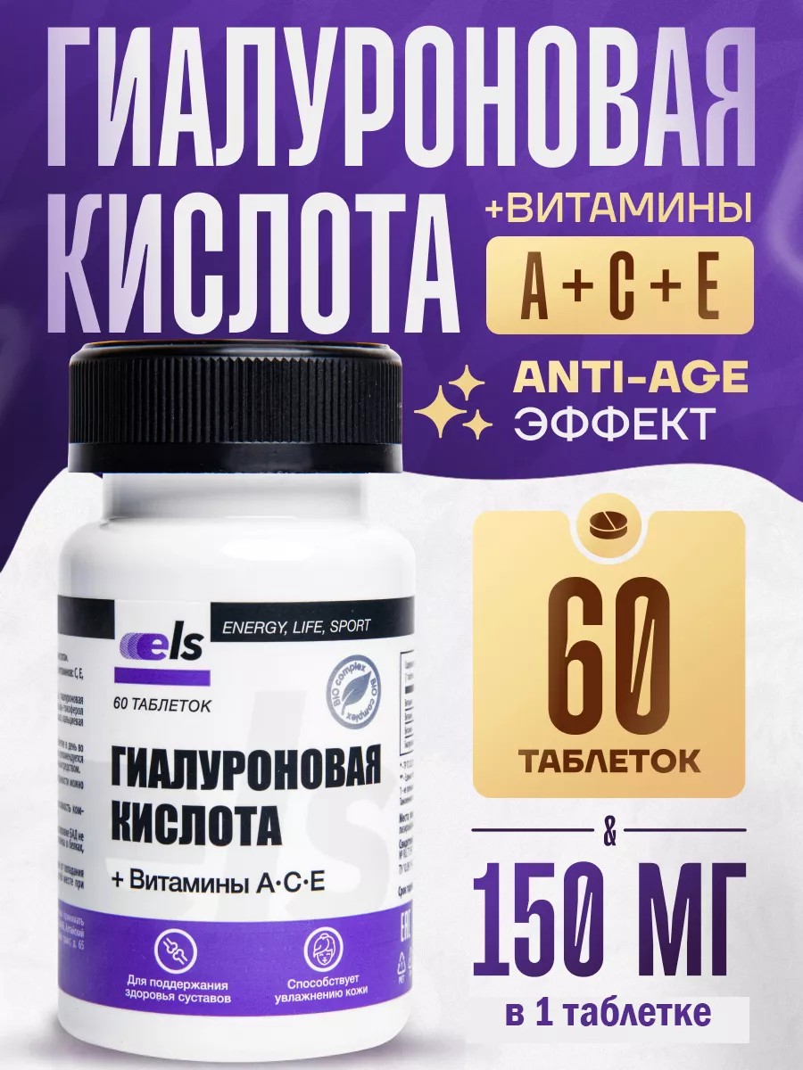 ELS Гиалуроновая кислота, таблетки 0,5 г № 60