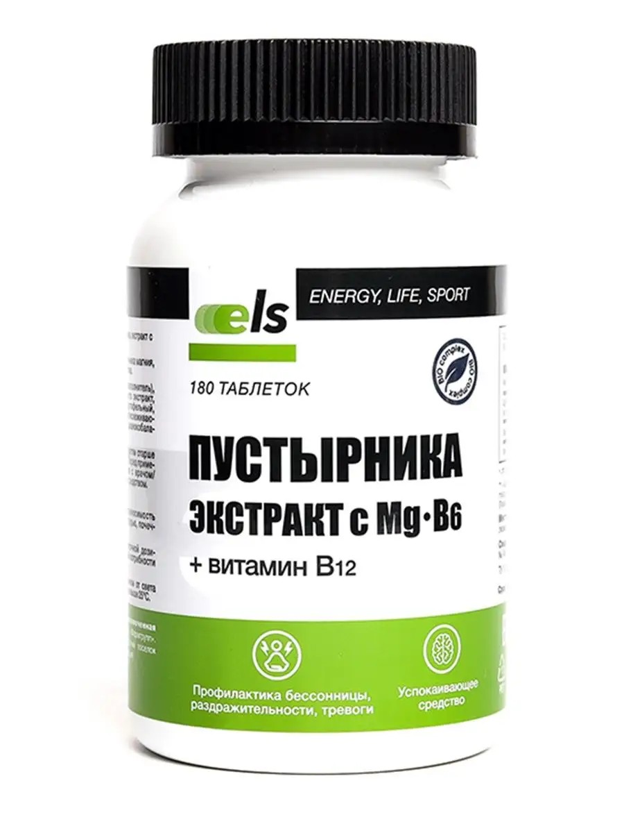 ELS Пустырник экстракт c Mg и витаминами B6 и B12, 180 таблеток