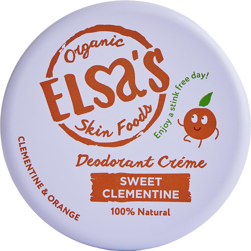 Discover the refreshing burst of citrus with our Gentle Clementine Cream Deodorant, made with natural ingredients. 50g INGREDIENTS Zea Mays (Corn Silk) Powder , Cocos Nucifera (Coconut) Oil , Butyrospermum Parkii (Shea) Butter , Magnesium Oxide, Helianthus Annuus (Sunflower) Seed Oil, Zinc Oxide (non-nano), Kaolin Clay, Euphorbia Cerifera (Candellila) Wax, Coco Caprylate, Tocopherol (Vitamin E), Mentha Piperita (Peppermint) Oil, Pogostemon Cablin (Patchouli) Oil, Melaleuca Alternifolia (Tea Tree) Oil, Pelargonium Graveolens (Geranium) Oil, Limonene, Linalool, Citronellol, Geraniol, Citral. Certified organic, naturally occurring in essential oils. SAFETY WARNING For external use only. See moreRECYCLABLE - All Elsa products come in eco-friendly packaging that is recyclable or home compostable. BAKING SODA FREE - Our natural deodorant is designed to be suitable for those sensitive to baking soda. In addition, the formula is 100 aluminum-free, supporting the body's natural detoxification process. 48-HOUR PROTECTION - Our natural deodorant is designed for active people, providing reliable protection for up to 48 hours. Whether you're engaged in sports, outdoor activities, or everyday routines, you can trust our deodorant to keep you feeling fresh and confident all day long. LASTS OVER 3 MONTHS - We pride ourselves on providing lasting value to our customers. With every purchase of our natural deodorant, you can expect extended use, as each tube is designed to last over three months. FORMULATED FOR OUR FAMILIES - Our natural deodorant was developed after the founder, searching for safe personal care solutions for her children, began developing natural deodorants for her daughters. DYNAMIC ESSENCE - From oranges and clementines made with natural ingredients.Elsa's Organic Skin Foods - Crème Déodorante Naturelle - Clémentine Douce - Sans Aluminium - Sans Bicarbonate de Sodium - 24 Heures Protection - Sans PlastiqueDESCRIPTION DU PRODUIT DESCRIPTION DU PRODUIT Découvrez l'éclat rafraîchissant des agrumes avec notre déodorant en crème Douce Clémentine, composé d'ingrédients naturels. 50g INGRÉDIENTS Poudre de Zea Mays (soie de maïs) , huile de Cocos Nucifera (noix de coco) , beurre de Butyrospermum Parkii (karité) , oxyde de magnésium, huile de graines d'Helianthus Annuus (tournesol), oxyde de zinc (non nano), argile de kaolin, Euphorbia Cerifera (Candellila ) Cire, Coco Caprylate, Tocophérol (Vitamine E), Huile de Mentha Piperita (menthe poivrée), Huile de Pogostemon Cablin (Patchouli), Huile de Melaleuca Alternifolia (Arbre à thé), Huile de Pelargonium Graveolens (Géranium), Limonène, Linalol, Citronellol, Géraniol, Citral . Certifié biologique, naturellement présent dans les huiles essentielles. AVERTISSEMENT DE SÉCURITÉ Pour usage externe uniquement. Voir plusRECYCLABLE - Tous les produits Elsa ont un emballage respectueux de l'environnement, recyclable ou compostable à domicile. SANS BICARBONATE DE SODIUM - Notre déodorant naturel est conçu pour répondre aux personnes sensibles au bicarbonate de soude. De plus, la formule est 100 sans aluminium, favorisant le processus naturel de détoxification du corps. PROTECTION 48 HEURES - Notre déodorant naturel est conçu pour les personnes actives, offrant une protection fiable jusqu'à 48 heures. Que vous soyez engagé dans des sports, des activités de plein air ou des routines quotidiennes, vous pouvez faire confiance à notre déodorant pour vous sentir frais et confiant tout au long de la journée. DURE PLUS 3 MOIS– Nous sommes fiers de fournir une valeur durable à nos clients. Avec chaque achat de notre déodorant naturel, vous pouvez vous attendre à une utilisation prolongée car chaque tube est conçu pour durer plus de trois mois. FORMULÉ POUR NOS FAMILLES - Notre déodorant naturel a été développé après que la fondatrice, à la recherche de solutions de soins personnels sûres pour ses enfants, ait commencé à développer des déodorants naturels pour ses filles. ESSENCE DYNAMIQUE - D'oranges et de clémentines issues d'ingrédients naturels.