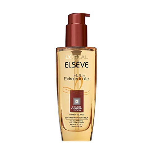 Extraordinary Color-Enhancing Oil Treatment for Colored or Highlighted Hair, enriched with 6 Rare Flower Oils and UV Filter. Soft, shiny and luminous hair, enhanced and protected color.Extraordinary Oil Color Vive Colored Hair 100ml. ELSEVE. Shampoos. Hair care. Hygiene, Beauty. Soin Huile Extraordinaire Sublimateur de Couleur pour Cheveux Colorés ou Méchés, enrichi en 6 Huiles de Fleurs Rares et Filtre UV. Des cheveux souples, brillants et lumineux, une couleur magnifiée et protégée.Huile Extraordinaire Color Vive Cheveux Colorés 100Ml. ELSEVE. Shampooings. Soins du cheveu. Hygiène, Beauté.