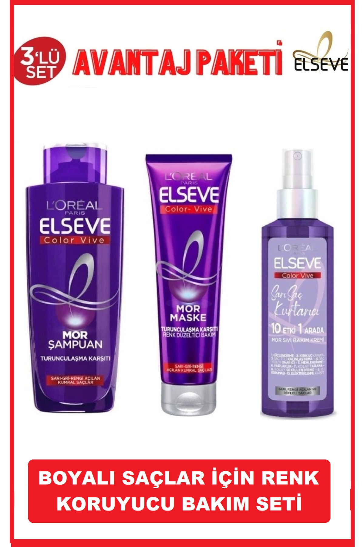 Elseve L'or al Paris Blonde Hair Rescue Purple Liquid Care Cream Mask and Shampoo 3-Piece Set