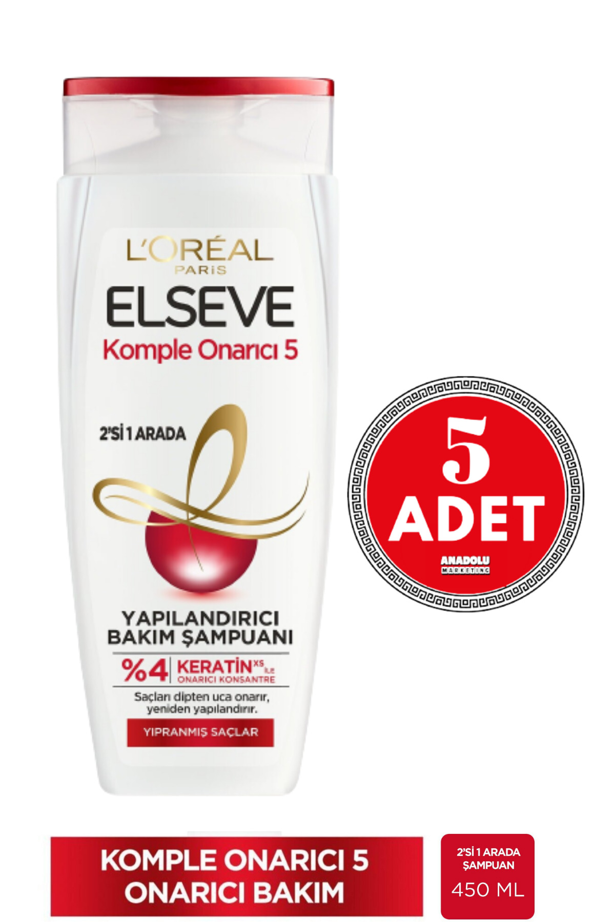Elseve L'Or al Paris Elseve Complete Repair 5 Restructuring Care Shampoo 2 in 1 450 ml 5 Pieces