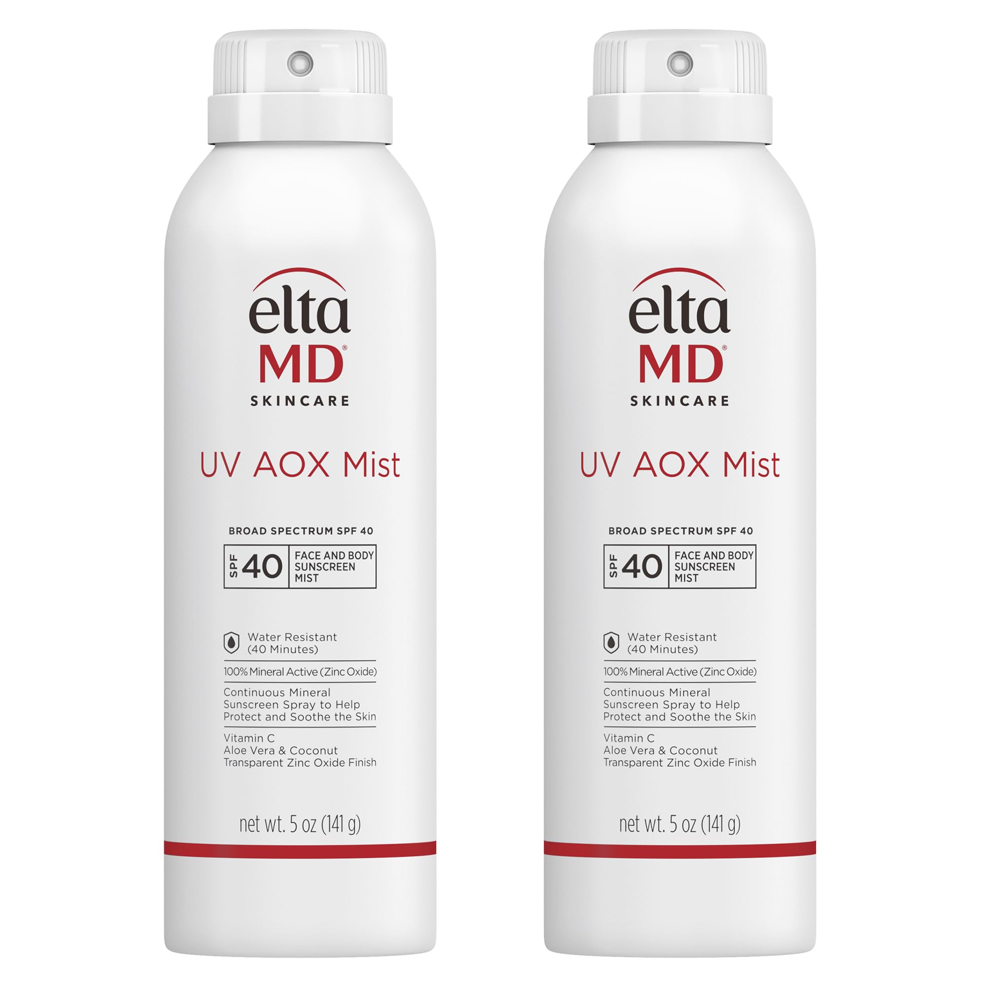 EltaMD UV AOX Mist Mineral Sunscreen Spray SPF 40 Spray Sunscreen for Face and Body Zinc Oxide Formula with Antioxidants 5 oz Bottle (Pack of 2)
