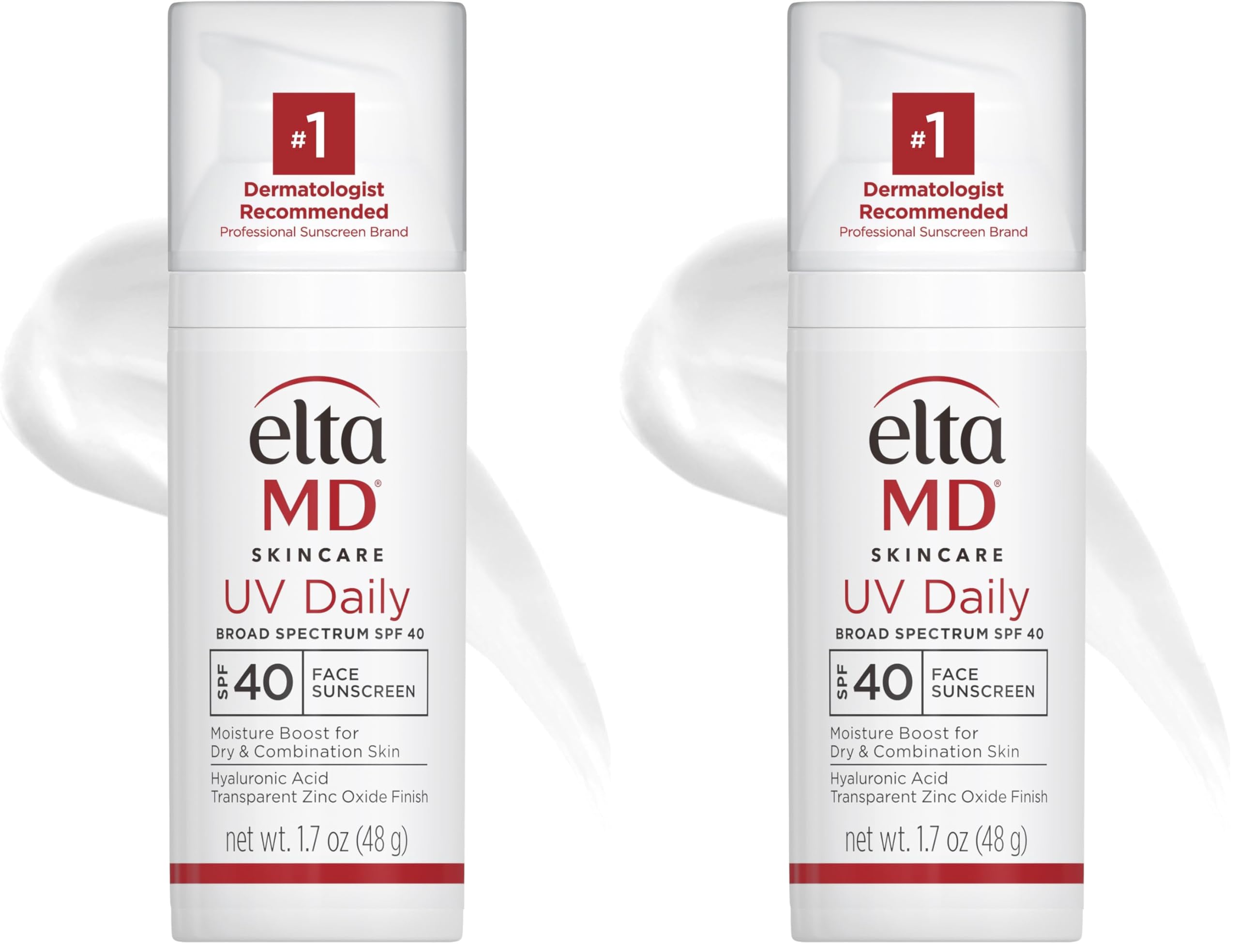 EltaMD UV Daily SPF 40 Face Sunscreen Moisturizer with Zinc Oxide Daily Face Moisturizer with SPF Sunscreen For Dry Skin 1.7 oz Pump (Pack of 2)
