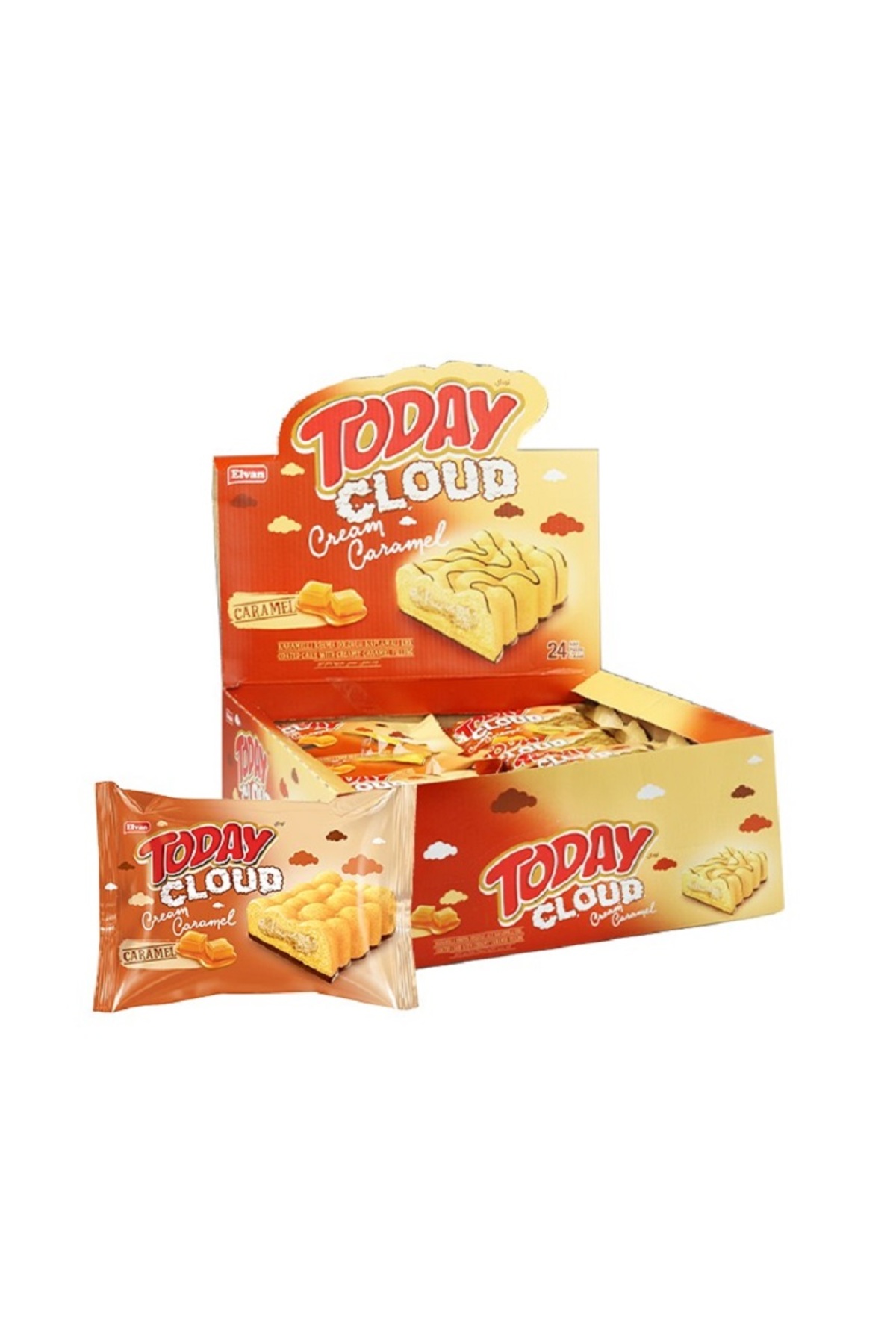 Bir adet Today Cloud Karamelli Krema Dolgulu, Kaplamali Kek 40 gramdir. 1 kutu içerisinde kendinden paketli 24 adet kek yer almakatdir.