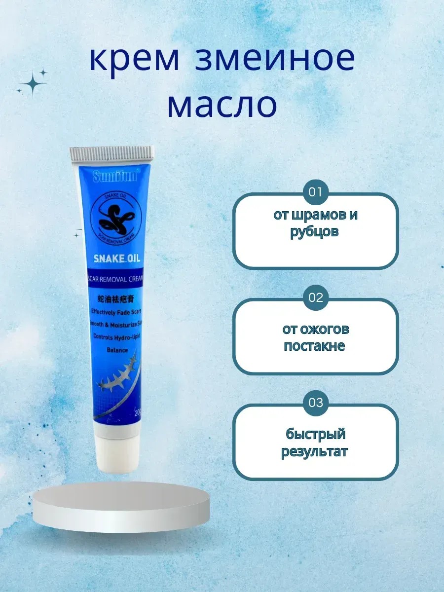 Snake oil scar cream is an effective treatment for scars, acne scars, burns, and stretch marks. Its active formula with natural ingredients promotes deep skin restoration, evens skin tone, and improves texture. It helps with post-surgical scars, cracks, post-acne marks, and blemishes. Suitable for all skin types, it has anti-inflammatory and healing properties. Regular use enhances regeneration and makes scars less noticeable. It is recommended to use twice daily. The cream is quickly absorbed, leaves no greasy residue, and restores skin's smoothness and elasticity.