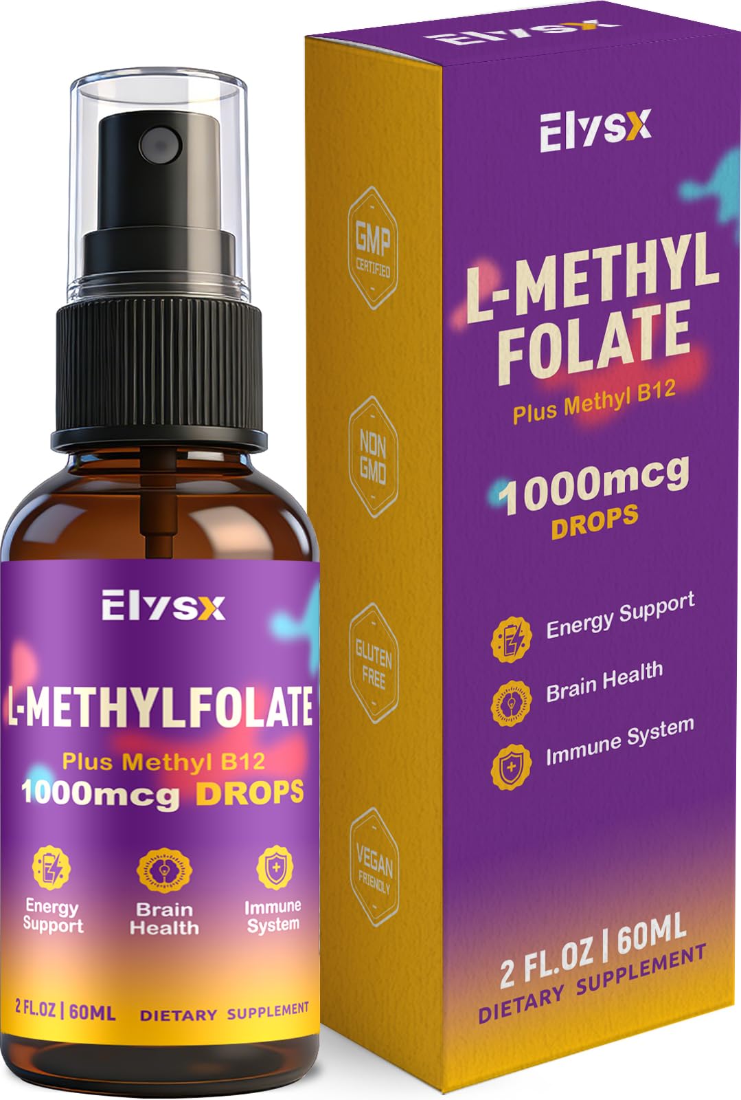 Elysx Liquid Methylfolate & B12 Spray Methylated Folate Drops for Kids & Adults with Choline TMG & Vitamins MTHFR Support Brain Health Immunity 2 Fl Oz