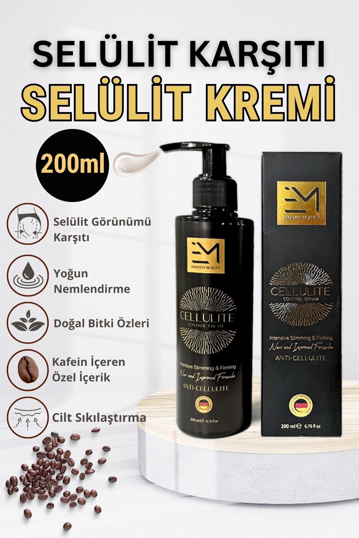 EM AMANOS BEAUTY Cellulite Cream - 200 ml - Professional Firming Caffeine and Natural Plant Extract