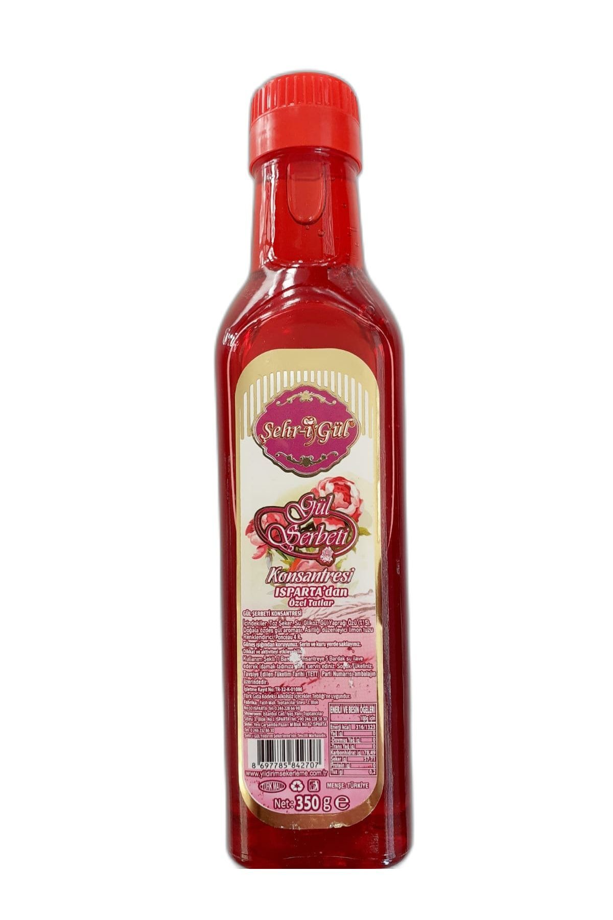 Yildirim Sekerleme, with its experience since 1972, produces Isparta's traditional rose sherbet under the brand name Sehr-i Gül. Its unique rose-flavored scent and flavor are delivered from the heart of the rose to your palate. We offer this beverage. It is packaged in a 350-gram glass bottle that you can enjoy and drink safely with your loved ones. It is produced with the registration certificate TR-32-K-01086 dated 17.12.2012 from the Ministry of Food, Agriculture and Livestock of the Republic of Turkey. It is a traditional, natural product of Isparta, in accordance with the Turkish Food Codex Non-Alcoholic Beverages Communiqué.