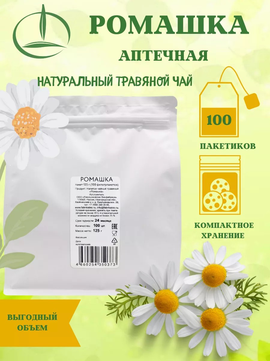 | Состав | 100 % цветы ромашки |