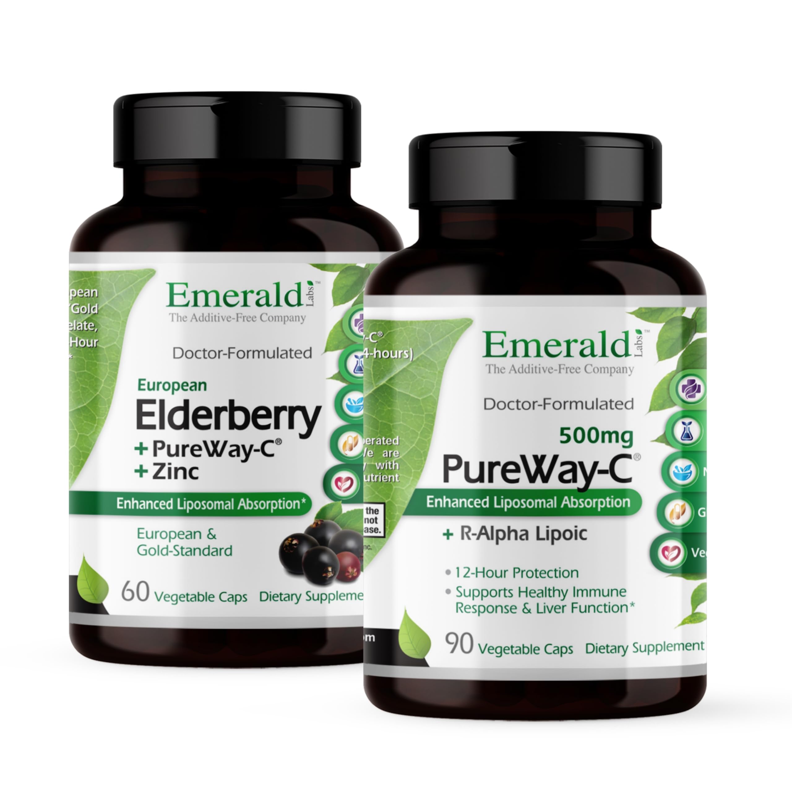 EMERALD LABS Bundle with Elderberry Plus (60 Veg Caps) & PureWay-C (90 Veg Caps) - Digestive & Immune Support with European Elderberry Extract Vitamin C Albion Chelated Zinc & R-Alpha Lipoic Acid*
