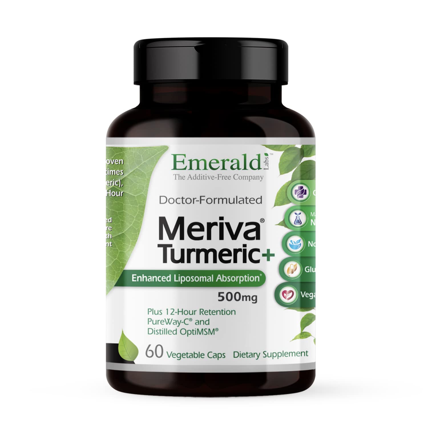 Additive-Free Supplements: Emerald Labs uses high-quality, doctor-formulated, superior nutrient forms, manufactured without the use of additives. Vegan-Friendly Capsules: Our Meriva Turmeric Plus comes in vegetable capsules for joint health and immune response support without any animal-derived ingredients . Joint Health Support: Features OptiMSM, a distilled MSM supplement that supports joint health and maintains healthy connective tissues . Superior Nutrient Formula: Each serving size includes 500mg of Meriva turmeric root extract and 25mg of vitamin C as PureWay-C for daily immune support and antioxidant benefits . High Bioavailability: Meriva turmeric curcuminoids for optimal absorption, offering 29 times the bioavailability of standard turmeric for immune health and joint support .