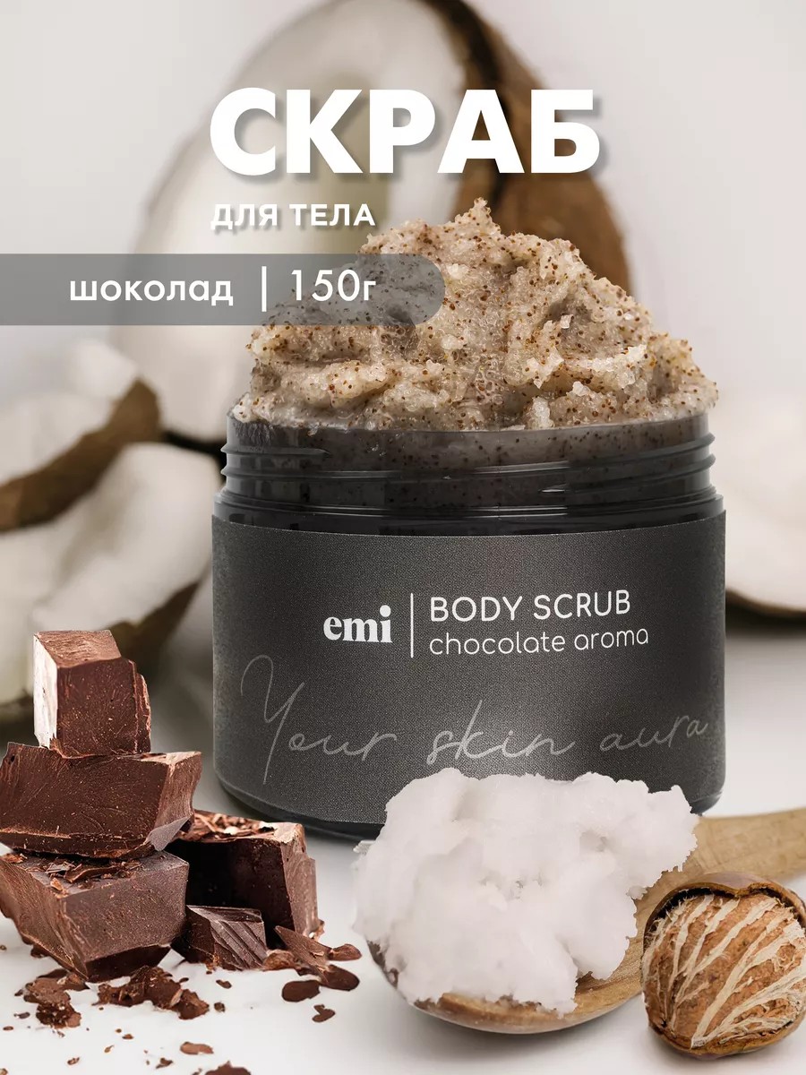 Сахарный скраб для тела «Chocolate Body Scrub» «E.Mi» - эффективная и комплексная косметическая формула с ароматом шоколада! Уходовая косметика с восстанавливающим, разглаживающим и увлажняющим действием бережно отшелушивает, способствуя обновлению эпидермиса. Ароматное бьюти – средство содержит натуральные органические масла, которые проникают глубоко в кожу и питают ее, делая более гладкой и нежной. Мелкая абрикосовая косточка и частицы сахара дают полирующий эффект, оказывая деликатное массажное действие и стимулируя кровообращение. Канделильский воск создает невидимую защиту, сохраняя водный баланс. Процедура скрабирования способствует глубокому очищению, выравниванию, восстановлению и увлажнению кожи. Шоколадный скраб рекомендуется использовать 1-2 раза в неделю. Это отличный выбор для принятия ванны и спа – процедур в душевой, бане или сауне. Продукт не мылится, не пенится и не рассыпается в руках. Он наносится на чистую сухую и влажную кожу. Не рекомендуется нанесение на проблемные и чувствительные, раздраженные и поврежденные участки кожи. Распределите состав мягкими массажными движениями и смойте теплой водой. Скраб не царапает и эффективен в борьбе против сухости и шелушений. Это средство с очищающим действием, способствующее деликатному удалению ороговевших частиц и интенсивному питанию. Оно способствует восстановлению упругости, красоты и здорового сияния женской и мужской кожи. Состав поставляется в банке с красивым дизайном. Он помогает бороться с несовершенствами в зоне рук, бедер и живота. Средство с оптимальной консистенцией подойдет взрослым женщинам и мужчинам, девушкам или парням. Это идеальный выбор в качестве подарочного комплимента близким людям, подружке или коллеге. Скраб с ароматом шоколада можно преподнести на праздник или просто так, без повода! У нас есть акции и распродажи, вы можете купить наши товары в подарок со скидкой!