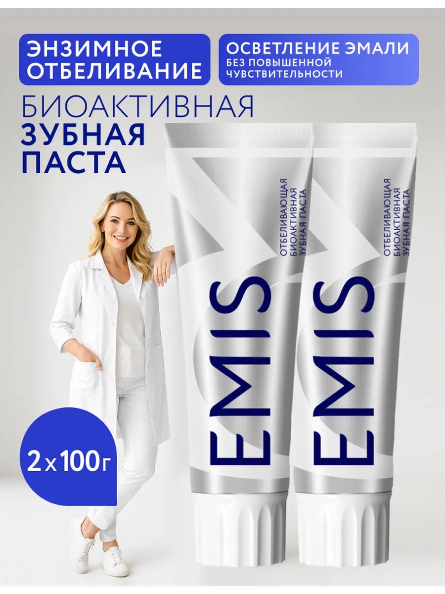 EMIS Зубная паста отбеливающая без фтора, биоактивная 100 г х2 шт