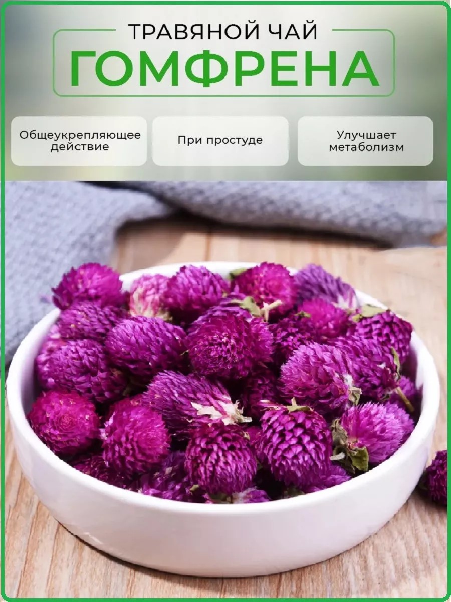 Гомфрена (цветы амаранта сушеные, сухоцветы. травяной чай премиум качества по доступной цене. Цветы для чая - не только нежный вкус, но и мягкое противогрибковое, противомикробное, противовоспалительное средство. Подходит для приготовления, как самостоятельно, так и в миксе с другими травами. Полезная добавка в любой повседневный чай как черный, зеленый, пуэр и белый. Сбор с гомфреной снимает симптомы мигрени, артрита, колита, понижает уровень холестерина. Цветочный чай из амаранта настолько уникален, что его востребованность последнее десятилетие на европейском континенте неуклонно растет. Настой (травяной чай) без кофеина наполняет энергией, очищает голос, эффективен в борьбе с ангиной, кашлем, бронхитом, ларингитом, хрипотой.