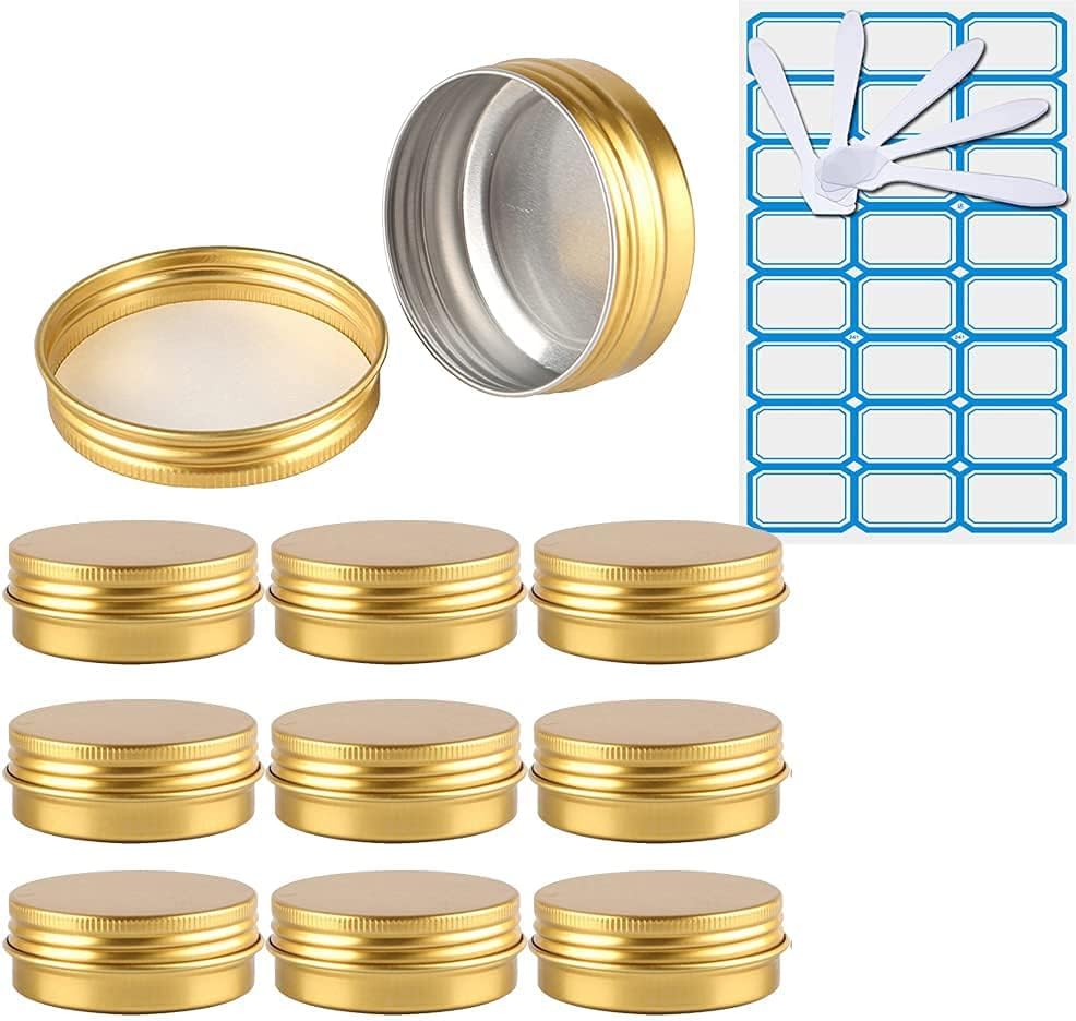 Description: - Resistant to stains . - Waterproof and moisture resistant. - Aluminum pots with screw lid and white foam pad included. - These travel cosmetic containers are small and lightweight, easy to carry, the best choice for storage. - These empty aluminium jars are great for storing homemade cosmetics, lip balm, ointment and cream and they can also be used to store arts and crafts, mini candles, nail arts, screws, beads, buttons, etc. Specification: - Material: Aluminium - Color: Matte Black This black aluminium tins can be ordered in 7 sizes: 30ml Ø 50 mm x 20 mm Height 80ml Ø 68 mm x 35 mm Height Package includes: 10 x empty aluminum tins 1 x Sheets of Label Stickers (24 Pcs small stickers) 5 x Mini SpatulaPlease feel free to contact me if you have any questions,I wish you a happy shopping!. ?MULTIFUNCTIONAL SMALL TINS?--- These empty jars are perfect for homemade lip balm, ointment and cream. They can also be used to store arts and crafts, mini candles, cosmetics, herbs, nails, hooks, beads, buttons, ointments, etc. ?PREMIUM ALUMINUM TINS WITH LIDS? --- These aluminum cosmetic jars with lids are made of high quality tinned aluminum, safe, lightweight but durable, high precision surface coating technology which is very decorative.The jars are good quality, can be easily screwed on and off and the lid also holds well. ?PORTABLE SIZE? --- Easy to carry and put into the bags, backpacks or luggage during business trips or travel. ?PACKAGE INCLUDES? ---10 Pieces 30ml Pink aluminum tin jars 5 x spoon 1Pieces round labels. ?PORTABLE SIZE? --- Easy to carry and put into the bags, backpacks or luggage during business trips or travel. ?PREMIUM ALUMINUM TINS WITH LIDS? --- These aluminum cosmetic jars with lids are made of high quality tinned aluminum, safe, lightweight but durable, high precision surface coating technology which is very decorative.The jars are good quality, can be easily screwed on and off and the lid.