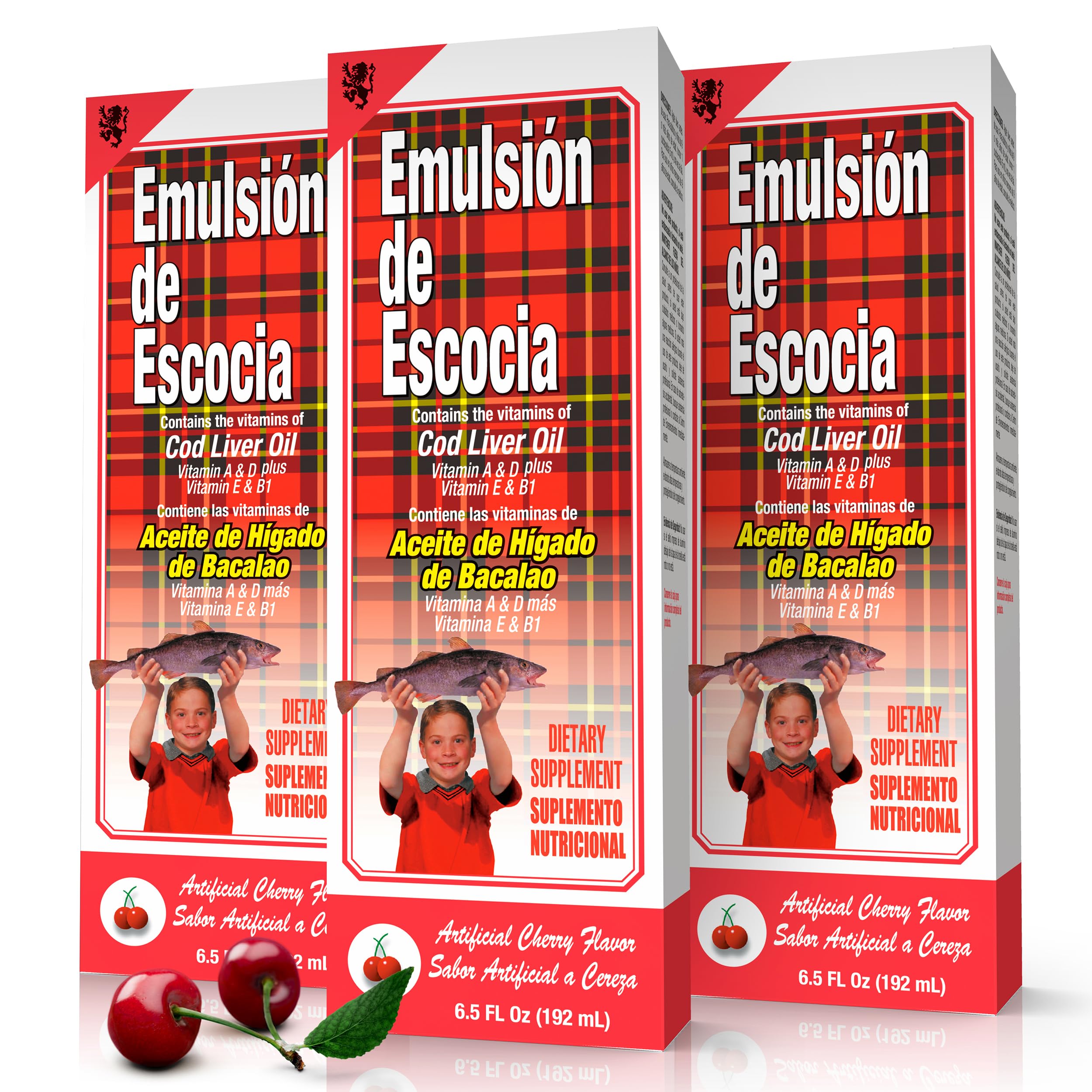 Emulsion de Escocia Cherry Flavor with Vitamins and Cod Liver Oil for Kids and Adults | Pleasant Taste | Immune and General Wellness Support | 6.5 Oz | 3-Pack