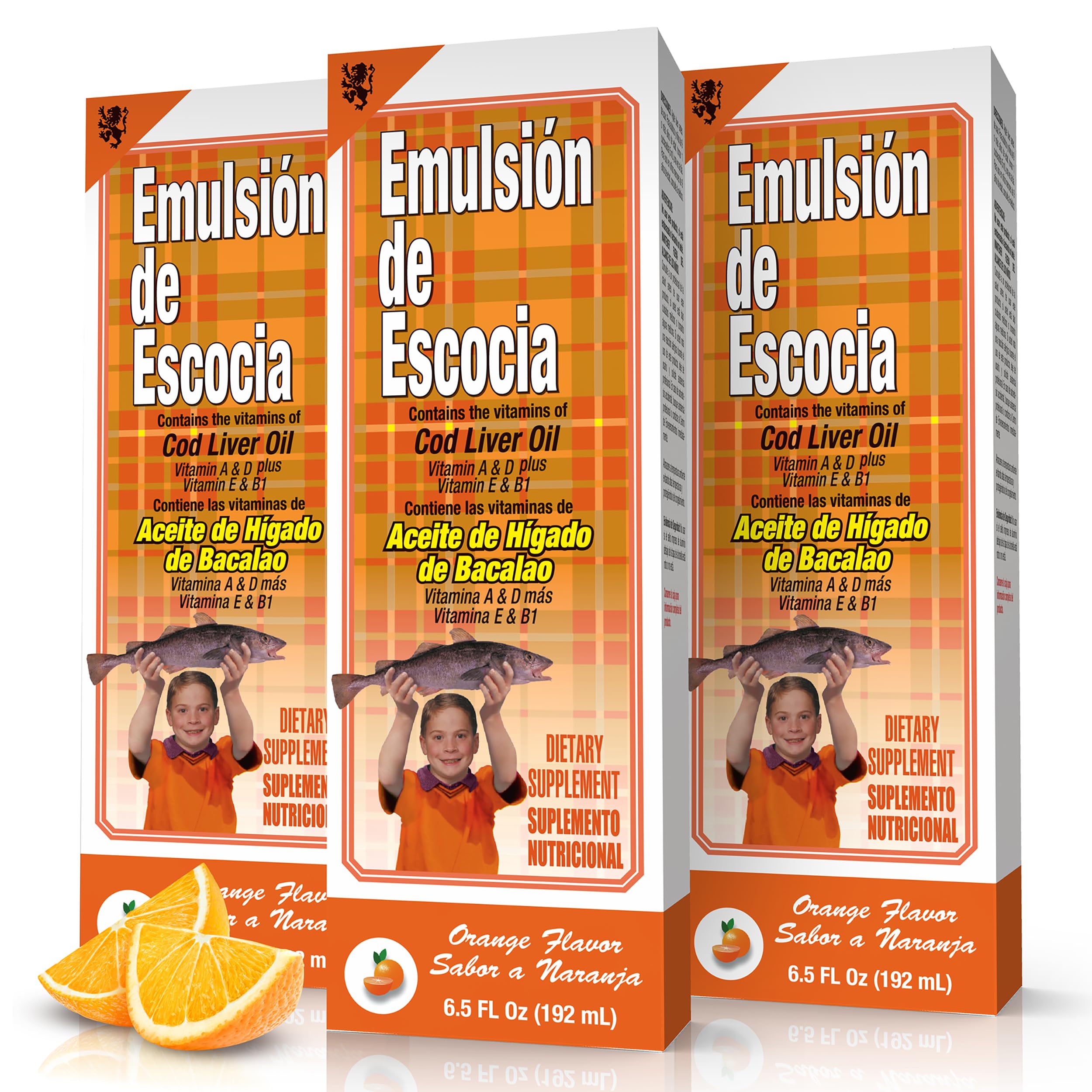 Emulsion de Escocia Orange Flavor with Vitamins and Cod Liver Oil for Kids and Adults | Natural Taste | Immune and Liver Support | 6.5 Oz | 3-Pack