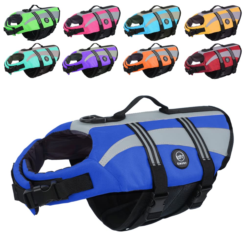 Striking and functional design: The small/medium-sized/large swimming vest is made of light colors and a material with high buoyancy that attracts the attention of the person so that your dog is the focus in the swimming pool, on the beach or when driving.Waterproof, breathable material: The dogwim vest for swimming consists of high-quality polyester oxford and nylon and network fabric, which is not only ripstop fabric, but also enables quick drying and good drainage.The dog swimming protection offers great buoyancy that you need while moving freely in the water.Sizes suitable for most dogs: The dog swimming vests are available in 6 sizes, from XS to 38xl, suitable for most dogs.Please measure your dog twice to get a size and refer to the dimension table to choose the right size for your dog.Tips: If your dog is between two sizes, we recommend the larger size.General practical designs: The life jacket for dogs is equipped with adjustable belts, quick lock buckles and lower abdomen with wide tire and loop areas that simply put on and undress the safety of the dog and create a comfortable condition for your dogs.And the robust D-ring hook of the pet swimming vest is perfect for dog leash.Improved designs: The dog vest is equipped with a variety of reflective strips that are clearly visible and are particularly advantageous for owners who go for a walk with their dogs in the evening.The life jacket for dogs has 2 handles for large sizes (only for size L, XL, 38xl) are much easier for you to take dogs out of the water.Auffälliges und funktionales Design: Die kleine/mittelgroße/große Hunde-Schwimmweste ist aus hellen Farben und einem Material mit hohem Auftrieb, das die Aufmerksamkeit der Person auf sich zieht, damit Ihr Hund im Schwimmbad, am Strand oder beim Bootfahren im Mittelpunkt steht. Wasserdichtes, atmungsaktives Material: Die Hundeschwimmweste zum Schwimmen besteht aus hochwertigem Polyester-Oxford- und Nylon- und Netzgewebe, das nicht nur Ripstop-Gewebe ist, sondern auch ein schnelles Trocknen und eine gute Drainage ermöglicht. Der Hundeschwimmschutz bietet großen Auftrieb, den Sie brauchen, während Sie sich frei im Wasser bewegen. Größen passend für die meisten Hunde: Die Hundeschwimmwesten sind in 6 Größen erhältlich, von XS bis 38XL, passend für die meisten Hunde. Bitte messen Sie Ihren Hund zweimal, um eine Größe zu erhalten und beziehen Sie sich auf die Maßtabelle, um die richtige Größe für Ihren Hund zu wählen. Tipps: Wenn Ihr Hund zwischen zwei Größen liegt, empfehlen wir die größere Größe. Allgemeine praktische Designs: Die Schwimmweste für Hunde ist mit verstellbaren Gürteln, Schnellverschluss-Schnallen und Unterbauch mit breiten Reifen- und Schlaufenbereichen ausgestattet, die die Sicherheit des Hundes einfach an- und auszuziehen machen und einen bequemsten Zustand für Ihre Hunde schaffen. Und der robuste D-Ring-Haken der Haustier-Schwimmweste ist perfekt für Hundeleine. Verbesserte Designs: Die Hundeschwimmweste ist mit einer Vielzahl von reflektierenden Streifen ausgestattet, die gut sichtbar sind und besonders vorteilhaft für Besitzer, die abends mit ihren Hunden spazieren gehen. Die Schwimmweste für Hunde hat 2 Griffe für große Größen (nur für Größe L, XL, 38XL) sind viel einfacher für Sie, Hunde aus dem Wasser zu nehmen.EMUST Hunde-Schwimmweste, reflektierende Rettungsweste für kleine Hunde mit Rettungsgriff, kleine Hundewesten, Lebensretter für Schwimmen, Bootfahren, Wasser, Po Blue, S S Po Blue