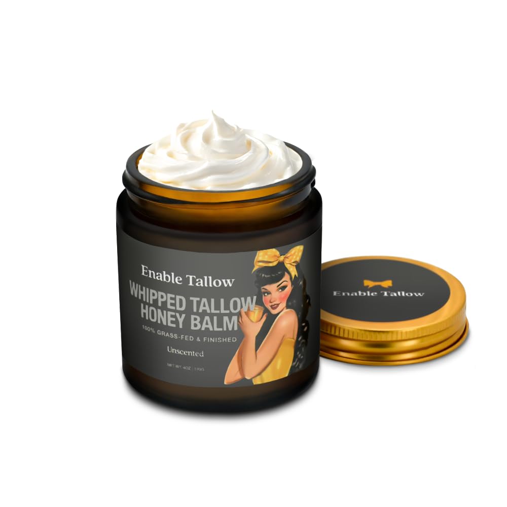 Enable Tallow Face & Body Cream Whipped Beef Tallow & Manuka Honey Balm for Dry Skin Eczema & Sensitive Skin Natural Moisturizer Unscented Fragrance-Free 4oz