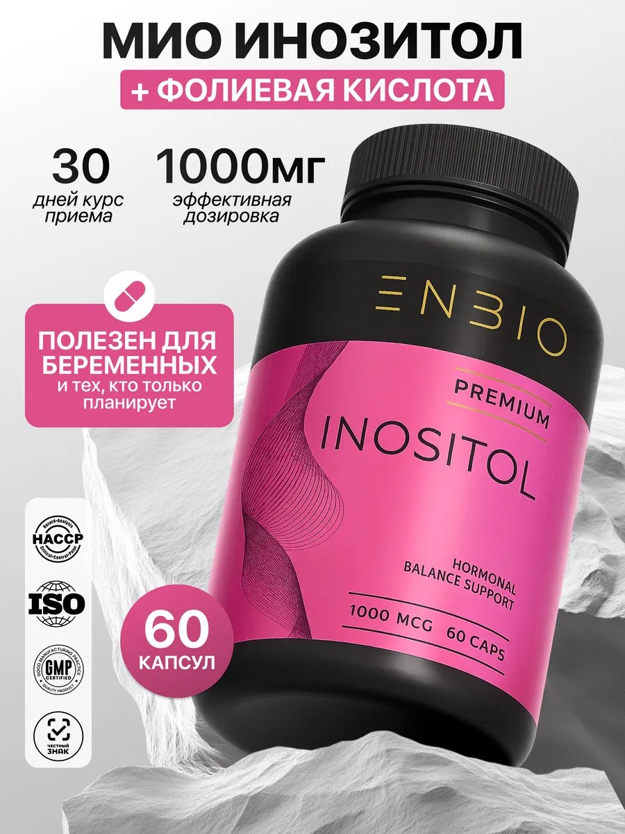 ENBIO Инозитол 1000 мг с Фолиевой кислотой, витамины для женщин