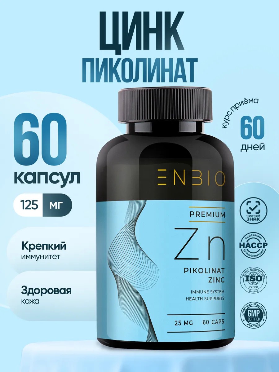 ENBIO Цинк Пиколинат Витамины для мужчин и женщин 25мг