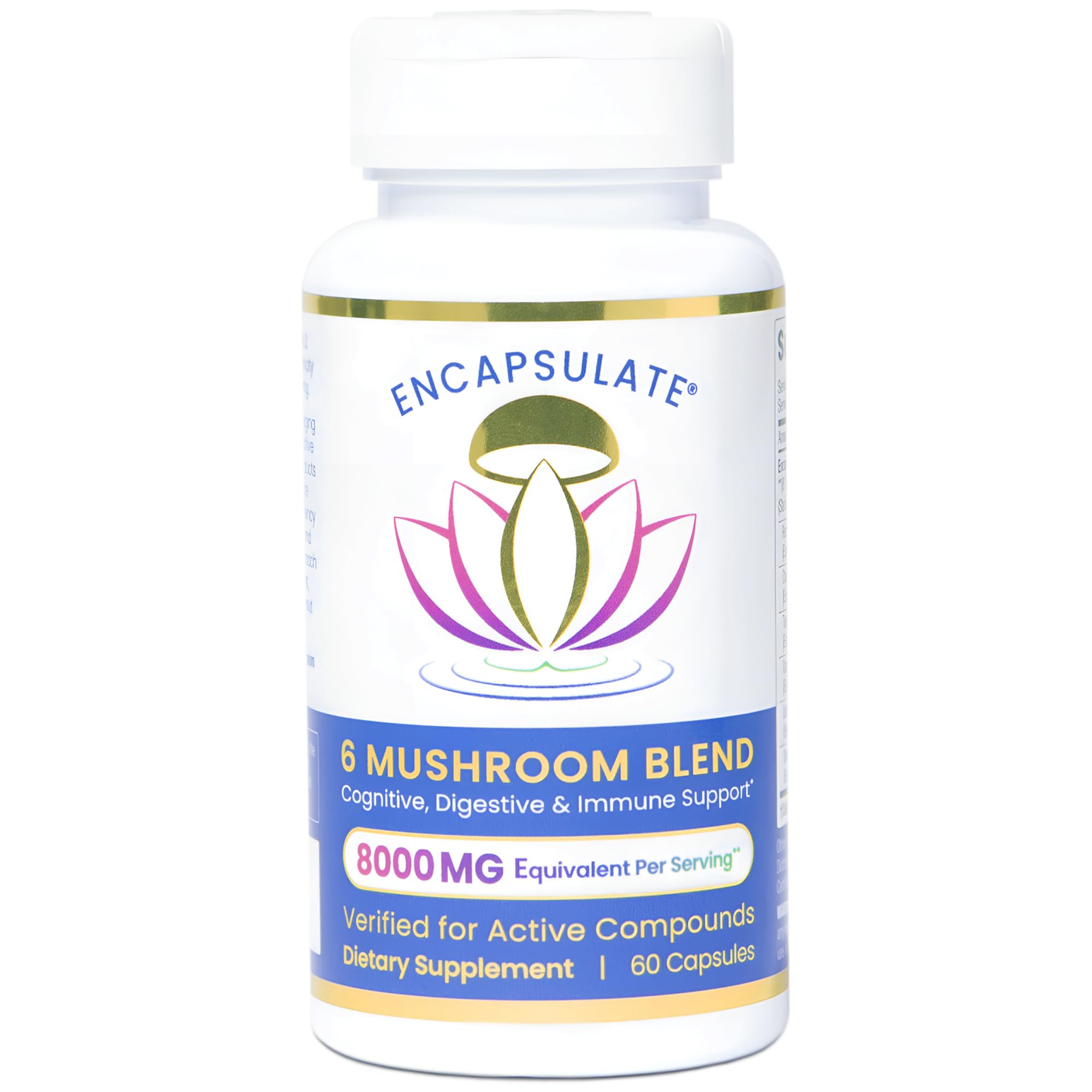ENCAPSULATE 6 Mushroom Blend Reishi Chaga Turkey Tail Cordyceps Lion s Mane & Shiitake 8:1 Mushroom Extract Nootropic & Adaptogen Mushroom Supplement for Gut Brain & Immune Support - 60 Caps