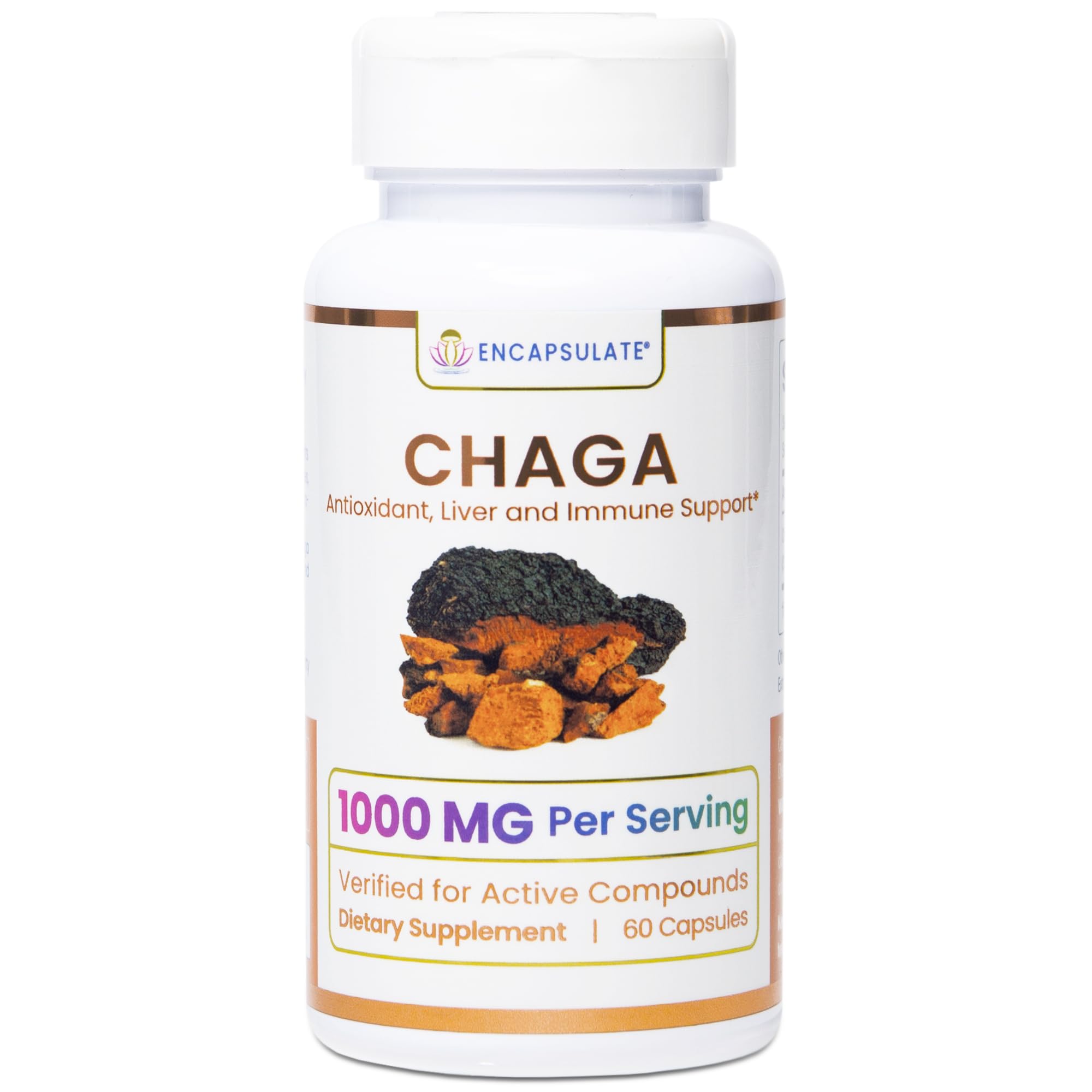 ENCAPSULATE Chaga Capsules 1000mg Premium Organic Fruiting Body 1:1 Mushroom Extract Adaptogen Mushroom Supplement for Antioxidant Digestive Oxidative Stress & Immune Support Vegan 60 Count