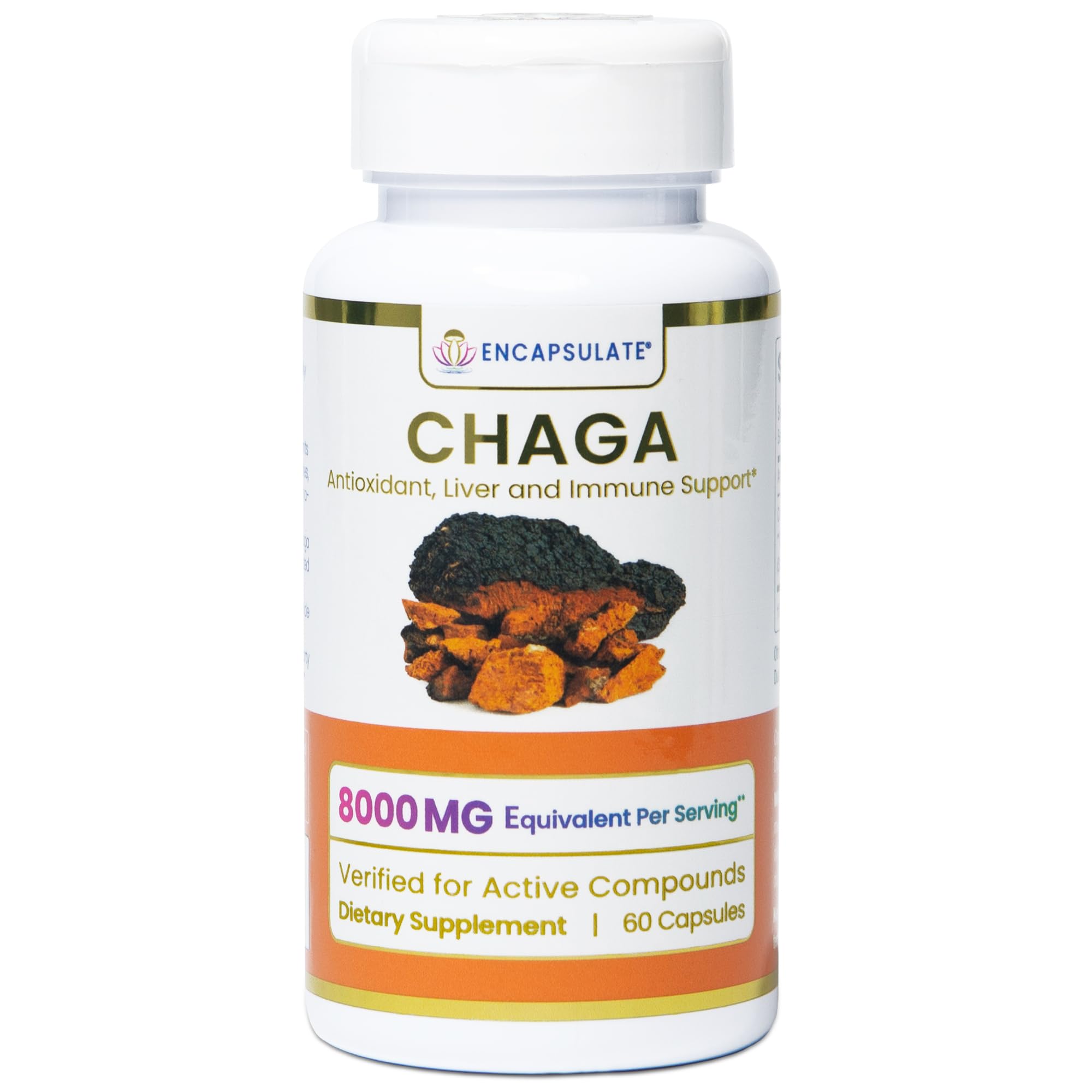 ENCAPSULATE Chaga Capsules 8:1 Extract Premium Organic Fruiting Body 8:1 Mushroom Extract Adaptogen Mushroom Supplement for Antioxidant Digestive & Immune Support Lab Tested 60 Vegan Capsules