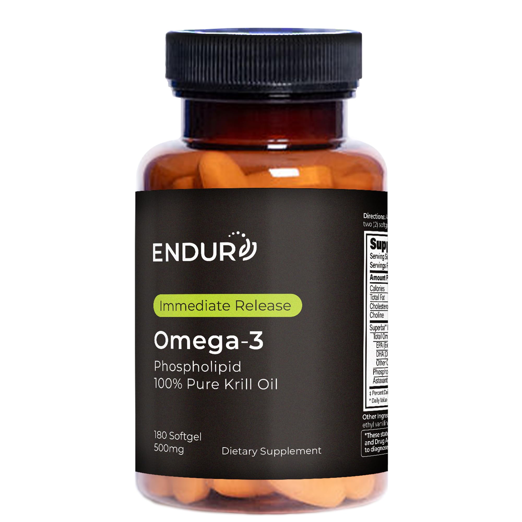 Endur Omega-3 Phospholipid (100% Pure Krill Oil) Heart Health Supplement Formulated for Optimal Absorption Gluten Free 500mg (180 Softgels)