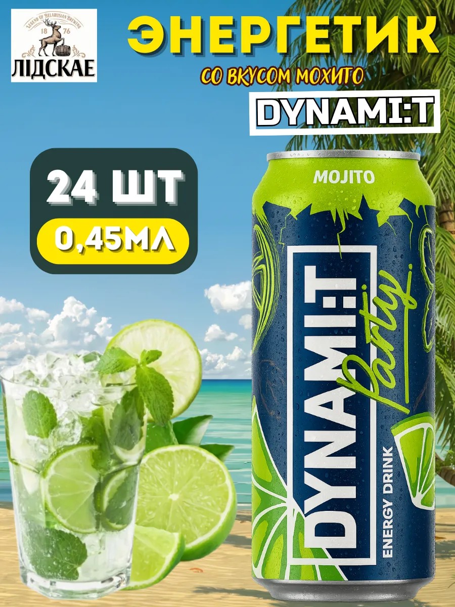 Dynamit Mojito energy drink is produced in Belarus, which guarantees high quality and control at every stage of production.