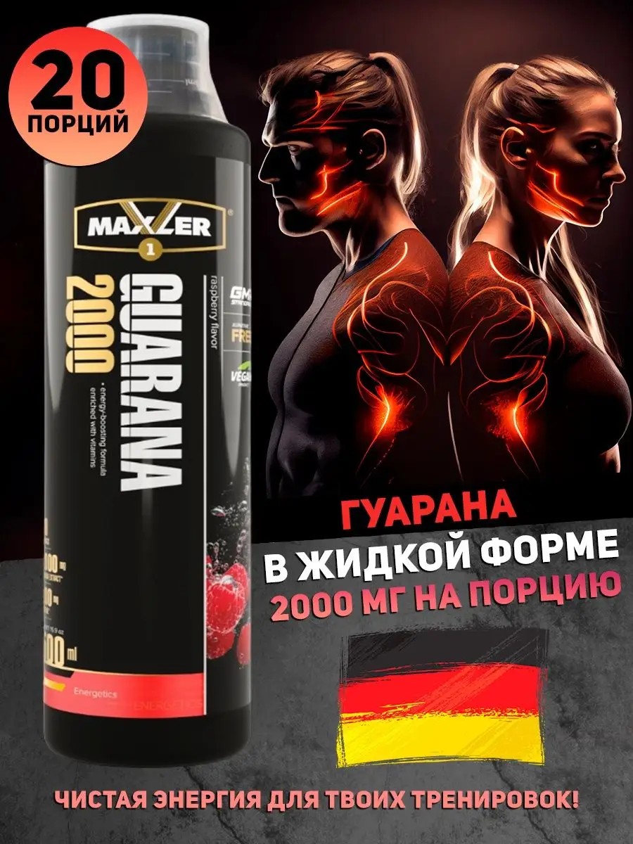 Experience an explosive surge of energy with Maxler Guarana 2000—a liquid energy drink that will support you not only during your workout but throughout the day! Each serving provides 2000 mg of guarana extract, as well as vitamins C, B1, B6, and pantothenic acid. The active ingredient in liquid guarana is caffeine, which helps break down fat stores, making it one of the most popular thermogenics on the market. Maxler Guarana 2000 Energy provides a rapid release of free fatty acids into the blood during physical activity, which preserves muscle glycogen stores, increases endurance and performance, and enhances the fat-burning effect of aerobic exercise. Experience the power of Maxler Guarana 2000 by taking one 25 ml serving neat or mixed with water. Get ready to take your training and energy levels to the next level!
