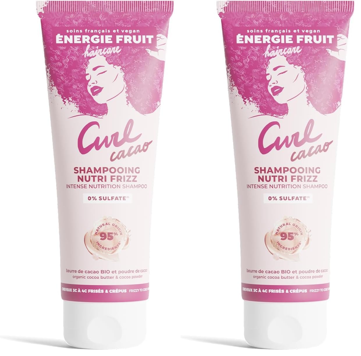 ENERGIE FRUIT | Shampoing sans Sulfate | Beurre & poudre de cacao | Cheveux Fris s & Cr pus | Vegan Marron 250.00 ml (Lot de 2)