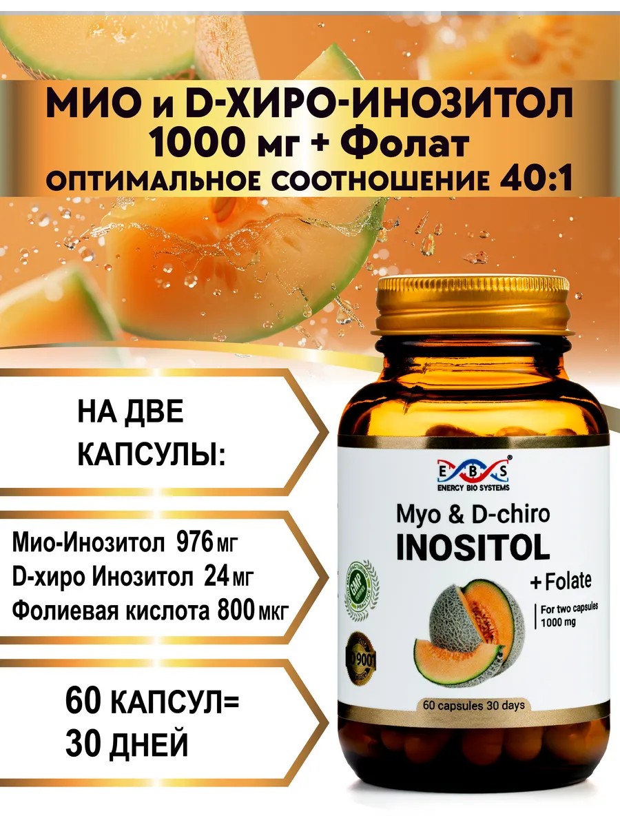 | Полное наименование товара | Мио и D-хиро инозитол + фолат 1000 мг 60 капсул |