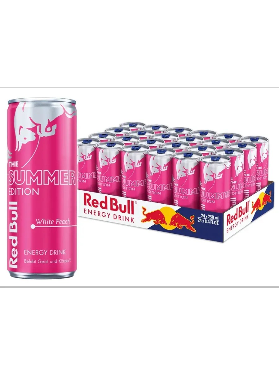 Red Bull Peach is a refreshing energy drink with the vibrant flavor of ripe peach that will give you a boost of energy throughout the day. Each 250 ml can contains a unique combination of ingredients designed to enhance concentration, improve reaction time, and boost endurance. This drink is the perfect companion for active people who value their time and strive for maximum results. A convenient 24-can package will keep you always on hand, whether it's a workout at the gym, a busy workday, or a fun party with friends. Red Bull Peach is more than just a drink; it's a source of energy for achieving your goals.