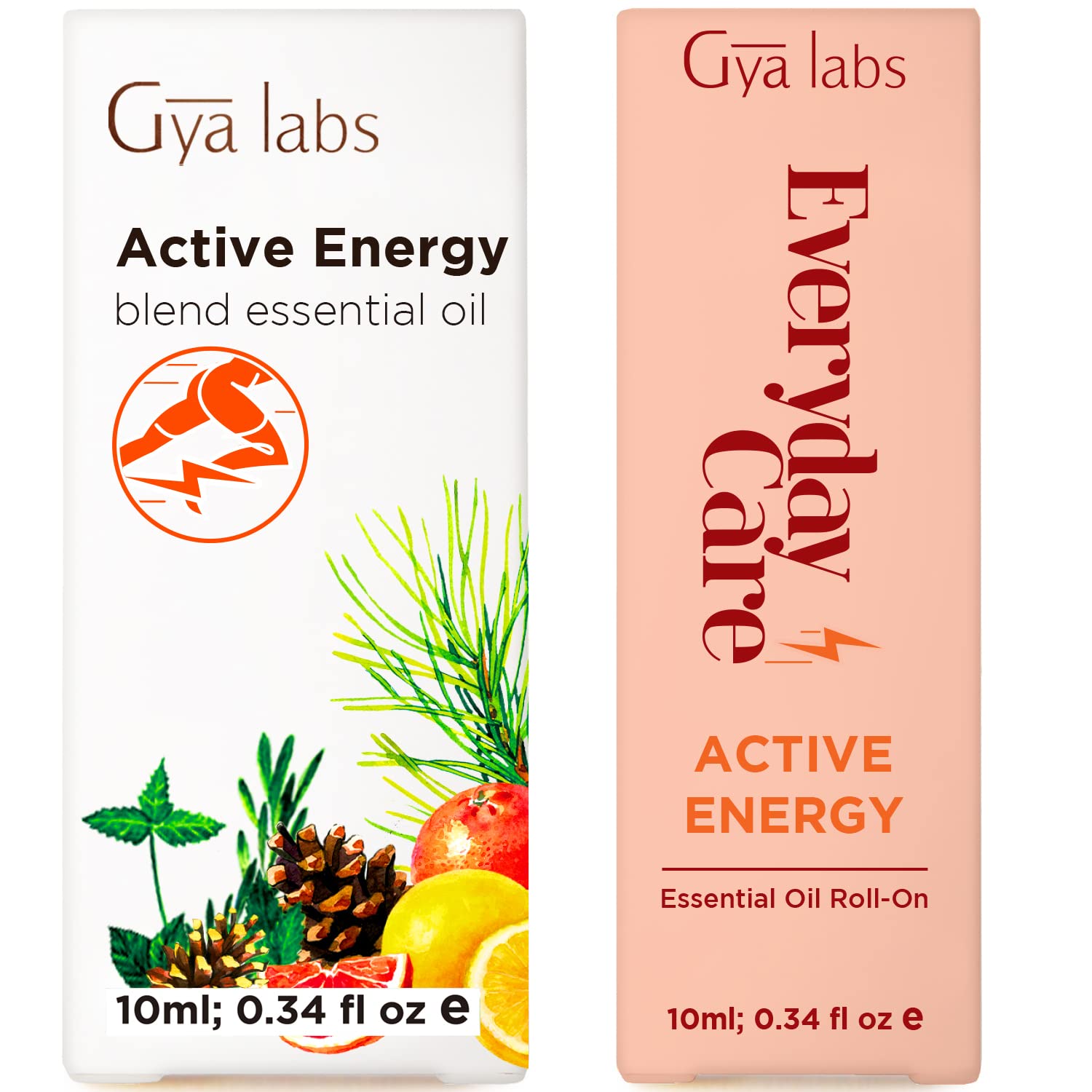 Energy Essential Oils for Diffuser & Active Energy Essential Oil Roll-On Set - Aromatherapy Grade Essential Oils Set - 2x0.34 fl oz - Gya Labs