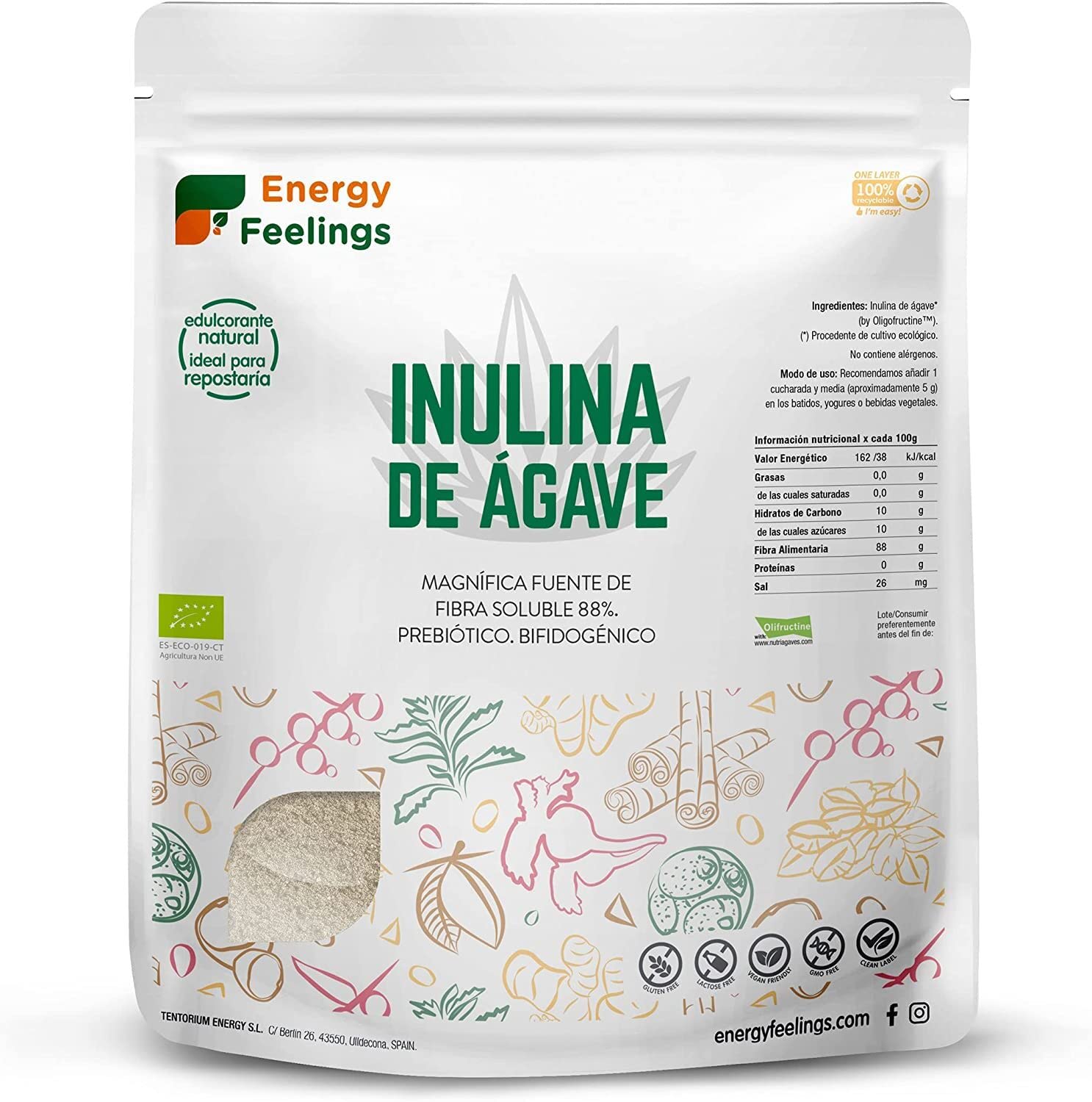 Energy Feelings' organic agave inulin powder is a superfood rich in prebiotic fiber that helps maintain a balanced gut microbiome and promotes healthy digestion. With 88 fiber, it helps regulate bowel movements and prevent constipation, while its bulking effect helps reduce hunger pangs and naturally control appetite. Its mildly sweet taste makes it easy to incorporate into hot, cold, or warm drinks, yogurt, smoothies, lemonade, ice cream, cereal, or any recipe you want to enrich with fiber and a healthy touch of sweetness. It can also be added to baked goods, snacks, and desserts, enhancing your nutritional profile without compromising taste. Suitable for all types of diets: vegan, gluten-free, no added sugar, non-GMO, and non-irradiated, it's perfect for those looking to take a conscious approach to their diet. Its dosage is simple: 1 dessert spoon per serving (3 to 5 g), 1 to 3 times a day, making it easy to integrate into your daily routine and providing all the benefits of organic agave inulin in a convenient and healthy way. DIRECTIONS FOR USE 1 dessert spoon per serving (3 to 5 g), 1 to 3 times a day. Can be diluted in hot, cold, or hot drinks. Also suitable for yogurt, ice cream, smoothies, juices, and lemonades. It can also be sprinkled on breakfast cereals. SAFETY WARNING Store in a cool, dry place away from direct sunlight. Keep in dry and clean conditions. Once opened, seal tightly and store as described. See moreEasy to use and dose: With 1 dessert spoon per serving (3 to 5 g), 1 to 3 times a day, easily incorporate agave inulin into your daily routine and enjoy its benefits. Suitable for all lifestyles: Vegan, gluten-free, no added sugar, non-GMO, and non-irradiated, perfect for vegetarian, vegan, and health-conscious diets. Multiple culinary uses: It can be mixed into cold, hot, or cold drinks, sprinkled on cereal, added to baked goods, snacks, and any recipe you want to enrich with fiber and natural sweetness. Gentle and natural alternative: Provides a light sweet flavor without added sugar, ideal for sweetening drinks, yogurt, smoothies, lemonades, and desserts in a healthy way. Satiety and appetite control: Its bulking effect on the stomach helps reduce feelings of hunger and facilitates weight management. Improves intestinal transit: With 88 fiber, it helps maintain digestive regularity and prevent constipation naturally. Boost your digestive health: Energy Feelings' organic agave inulin is a prebiotic fiber that promotes a balanced gut microbiota and contributes to more regular digestion.Energy Feelings Inuline en poudre 500 g, source de fibres solubles, inuline d'agave biologique, prébiotique, 100 végétalien, sans gluten et sans lactose, inulinDESCRIPTION DU PRODUIT DESCRIPTION DU PRODUIT L'inuline d'agave en poudre écologique de Energy Feelings est un super aliment riche en fibres prébiotiques qui aide à maintenir l'équilibre du microbiote intestinal et favorise une digestion saine. Avec 88 de fibres, il contribue à réguler le transit intestinal et à prévenir la constipation, tandis que son effet volumisant aide à réduire la sensation de faim et à contrôler naturellement l'appétit. Son léger goût sucré permet de l'incorporer facilement dans des boissons froides, chaudes ou chaudes, des yaourts, des smoothies, des limonades, des glaces, des céréales ou toute recette que vous souhaitez enrichir en fibres et une touche sucrée saine. En outre, il peut être ajouté aux boulangeries, collations et desserts, améliorant ainsi votre profil nutritionnel sans altérer le goût. Convient à tous les types de régimes : végétalien, sans gluten, sans sucre ajouté, sans OGM et non irradié, parfait pour ceux qui cherchent à prendre soin de leur alimentation de manière consciente. Son dosage est simple, avec 1 cuillère à dessert par prise (3 à 5g), 1 à 3 fois par jour, facilitant son intégration dans la routine quotidienne et offrant tous les bienfaits de l'inuline d'agave bio de manière pratique et saine. MODE D'EMPLOI 1 cuillère à dessert par prise (3 à 5 g), 1 à 3 fois par jour. Peut être dilué dans des boissons froides, chaudes et chaudes. Dans les yaourts, glaces, smoothies, jus et limonades. Il peut également être saupoudré sur les céréales du petit-déjeuner. AVERTISSEMENT DE SÉCURITÉ Conserver dans un endroit sec, frais et à l'abri de la lumière directe. Dans des conditions sèches et propres. Une fois ouvert, fermer hermétiquement et stocker dans les conditions décrites. Voir plusFacile à utiliser et doser : avec 1 cuillère à dessert par prise (3 à 5 g), 1 à 3 fois par jour, intégrer facilement l'inuline d'agave dans votre routine quotidienne et profitez de ses bienfaits. Convient à tous les styles de vie : végétalien, sans gluten, sans sucre ajouté, sans OGM et non irradié, parfait pour les régimes végétariens, végétaliens et soucieux de la santé. Multiples utilisations en cuisine : il peut être mélangé dans des boissons froides, chaudes ou chaudes, saupoudré sur des céréales, ajouté aux boulangeries, collations et toute recette que vous souhaitez enrichir en fibres et en douceur naturelle. Alternative douce et naturelle : apporte une légère saveur sucrée sans sucre ajouté, idéale pour sucrer les boissons, yaourts, smoothies, limonades et desserts de manière saine. Sensation de satiété et contrôle de l'appétit : son effet volumisant sur l'estomac contribue à réduire la sensation de faim et facilite le contrôle du poids. Améliore le transit intestinal : avec 88 de fibres, il aide à maintenir la régularité digestive et à prévenir la constipation de manière naturelle. Boostez votre santé digestive : l'inuline d'agave bio de Energy Feelings est une fibre prébiotique qui favorise l'équilibre du microbiote intestinal et contribue à une digestion plus régulière.