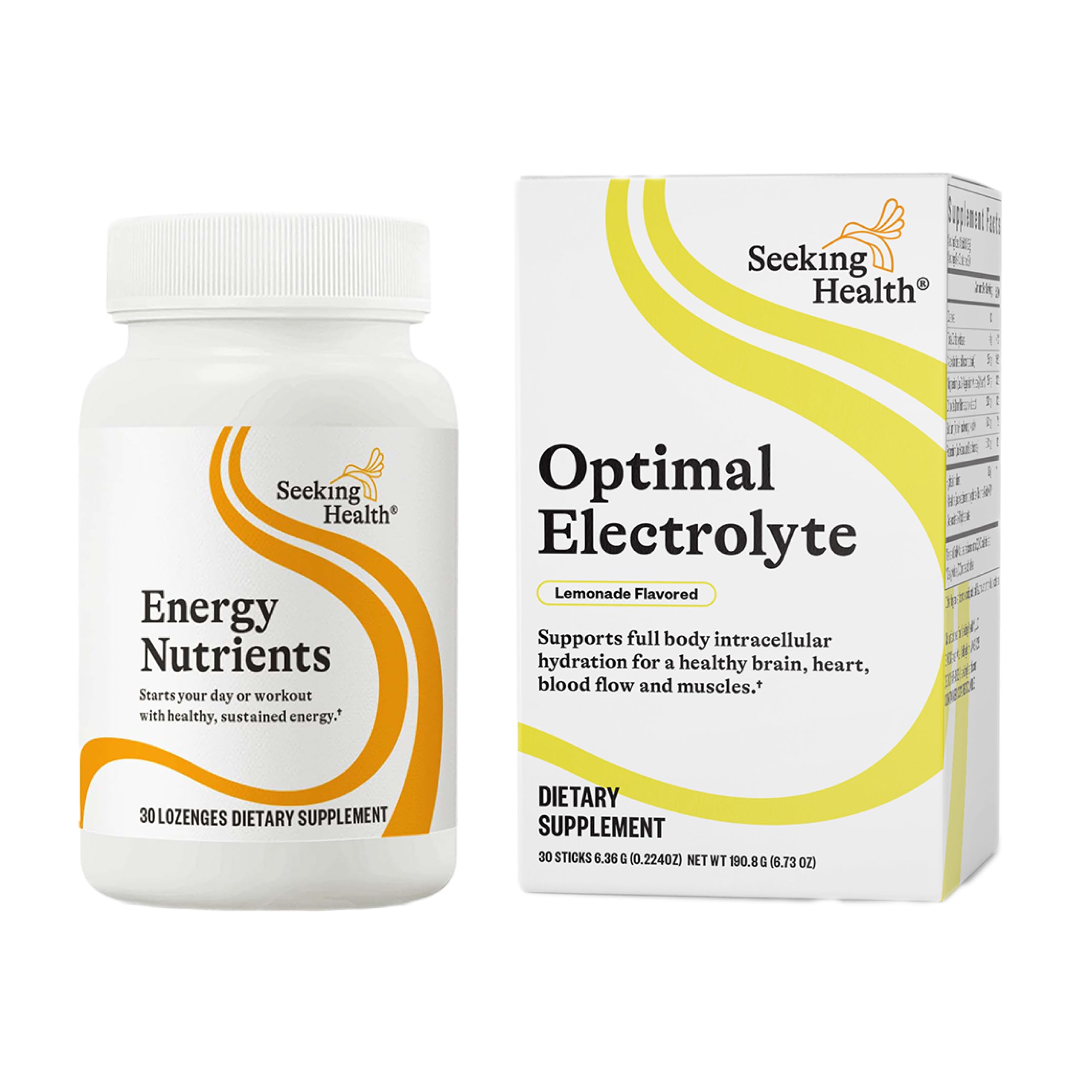 Seeking Health Energy Nutrients delivers PEAK ATP, glutathione, and targeted vitamins for sustained cellular energy, clarity, and daily mental and physical nourishment in a fast-absorbing lozenge. Maximize the benefits with Seeking Health Optimal Electrolyte Sticks, complete with PEAK ATP, creatine, vitamin B3, magnesium, and sodium—vegan, allergen-free—for optimal hydration, muscle support, and a healthy, energetic mindset for every challenge.