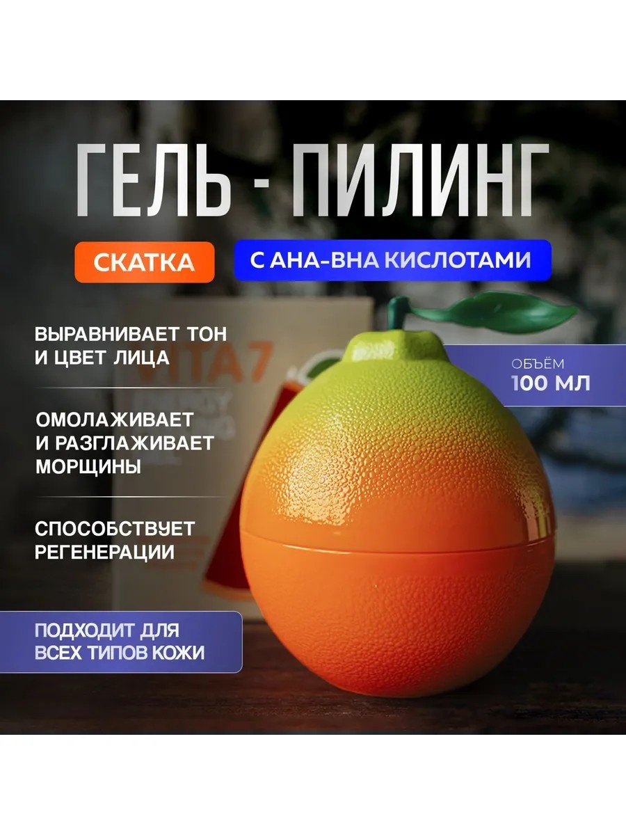 Энергетический пилинг-гель (скатка) с AHA-BHA кислотами для лица The Yeon Vita7 Energy Peeling Gel содержит 7 витаминов, фруктовые кислоты и комплекс растительных экстрактов для деликатного и эффективного удаления отмерших клеток с поверхности кожи без повреждения эпидермиса.\n\nПилинг-гель осветляет пигментацию, увлажняет и смягчает кожу, выводит токсины, освобождает поры от кератиновых пробок и излишков жира, бережно полирует ее, придавая гладкость, яркость, чистоту, матовость и свежесть.\n\nАктивные компоненты:\n- Экстракт мандарина богат бета-каротином, витамином С и лимонной кислотой. Восстанавливает защитную функцию кожи, восполняет дефицит витаминов и усиливает восстанавливающие свойства клеток на сухих участках кожи. Оказывает тонизирующий эффект, предотвращая дряблость кожи.\n- Экстракт лимона благодаря высокому содержанию лимонной, аскорбиновой (витамина С) и яблочной кислоты способствует очищению кожи от отмерших клеток, улучшает состояние комбинированной и жирной кожи: нормализует процессы эпителизации, уменьшает плотность комедонов и размеры пор. Проявляет антибактериальное действие, стимулирует процесс регенерации клеток кожи, разглаживает мелкие морщинки.\n\nХарактеристики:\n- Тип: Пилинг-скатка\n- Бьюти-ингредиент: AHA-кислота, BHA-кислота, Витамин С\n- Вид пилинга: Мультикислотный\n- Эффект: Очищение, Осветление, Увлажнение\n- Применение: Дневной уход, Ночной уход, От прыщей (анти-акне)\n- Область использования: Лицо, Шея, Зона декольте\n- Целевая аудитория: Взрослая\n- Пол: Женский, Мужской\n- Возрастной диапазон: Для любого возраста\n- Объем: 100 мл\n- Упаковка: Картонная коробка\n- Страна-изготовитель: Южная Корея\n- Тип кожи: Для нормальной кожи, Для комбинированной кожи, Для проблемной кожи\n- Особенности состава: Подходит для ежедневного применения, Не комедогенна, Натуральные экстракты, Без камфоры, Без парабенов, Без формальдегида