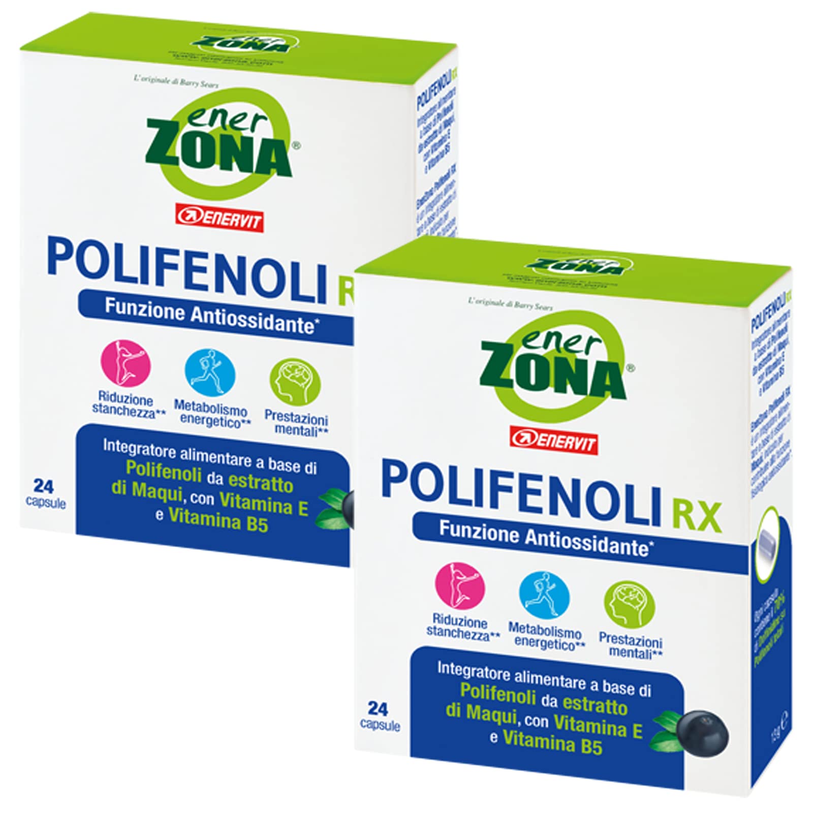 "Polyphenols are valuable molecules with high antioxidant power found in the most colorful parts of fruits and vegetables and play an essential role in protecting and maintaining the body's overall well-being. vEnerZona Polyphenols RX is the only capsule supplement with maqui dolphinidins, cocoa polyphenols, and vitamins you can always rely on, especially during difficult times." And you need real support. - Antioxidant function - Reduced fatigue - Energy metabolism. - Energy metabolism. An extra step. A period of emotional and mental stress, a study session, weeks of intense work, or even the change of seasons. There are many situations that require us to give our best, and it's not always easy. The EnerZona Polyphenol RX supplement helps you meet daily challenges. Take 1 to 3 capsules daily, or if you prefer, open them and pour the contents into water for a fresh, colorful, and slightly fruity drink. Contributes to physiological antioxidant function vitamin E contributes to the protection of cells from oxidative stress Vitamin B5 contributes to the reduction of tiredness and fatigue, normal mental performance, and normal energy-yielding metabolism. Take 1 to 3 capsules daily. Swallow the capsules with a glass of water. Alternatively, you can open the capsules and dissolve the contents in a glass of water to obtain INGREDIENTS Isomaltulose ( ) - Cocoa extract standardized to 29 flavanols (Theobroma cacao L., seed, maltodextrin) (11.1 extract in the finished product) - Maqui extract (Aristotelia chilensis mol. Stuntz, fructus, maltodextrin) standardized to 35 total polyphenols and 25 dauphinic anthocyanins (7.4 extract in the finished product) - Coating agent: hydroxypropyl methylcellulose - Anti-caking agent: magnesium salts of fatty acids - Vitamin E (D-Alpha-tocopherol acetate) - Vitamin B5 (calcium D-pantothenate) - Food-grade gelatin. ( )Isomaltulose is a source of glucose and fructose. May contain traces of milk, eggs, and soy.Enervit: We develop and produce innovative nutritional and integration solutions with one clear objective: to help everyone improve their quality of life. Directions: Take 1 to 3 capsules daily. Swallow with a glass of water, or open the capsules and dissolve the contents in water. Properties: Polyphenols are highly antioxidant molecules that play a vital role in protecting and maintaining the body's overall well-being. Benefits: Recommended for reducing fatigue during periods of emotional and mental stress, study sessions, intense work weeks, or even seasonal changes. Polyphenols: This formula is designed for daily well-being, thanks to cocoa flavols. It has an antioxidant function and reduces tiredness and fatigue.Enervit, Polyphénols RX EnerZona, 2 boîtes de 24 gélules, suppléments antioxydants avec des flavanols de cacao, source de vitamine E et B5, fonction antioxydante 48DESCRIPTION DU PRODUIT DESCRIPTION DU PRODUIT « Les polyphénols sont de précieuses molécules au pouvoir antioxydant élevé qui se trouvent dans les parties les plus colorées des fruits et légumes et jouent un rôle essentiel pour la protection et le bien-être général de l'organisme. vEnerZona Polyphenols RX est le seul complément en capsules avec dauphinidines du maqui, polyphénols du cacao et vitamines sur lesquelles on peut toujours compter, surtout quand on traverser une période difficile. et vous avez besoin de Un véritable support ". - Fonction antioxydante - réduction de la fatigue - métabolisme énergétique. - métabolisme énergétique. Une marche en plus Une période de stress émotionnel et mental, une séance d'étude, des semaines de travail intense ou même le changement de saison. Il y a beaucoup de situations qui nous imposent de donner le meilleur de nous-mêmes, et ce n'est pas toujours facile. Le complément EnerZona Polyphenol RX aide à relever les défis quotidiens. Prenez 1 à 3 gélules par jour ou si vous préférez, ouvrez-les et versez le contenu dans l'eau pour obtenir une boisson fraîche, colorée et légèrement fruitée. contribue à la fonction antioxydante physiologique la vitamine E contribue à la protection des cellules contre le stress oxydatif La vitamine B5 contribue à la réduction de la fatigue et de la fatigue, au rendement mental normal et au métabolisme énergétique normal. Prendre 1 à 3 gélules par jour. Avaler les gélules en accompagnant la déglutition avec un verre d'eau. Alternativement, vous pouvez ouvrir les capsules et dissoudre le contenu dans un verre d'eau pour obtenir INGRÉDIENTS Isomaltulose ( ) - Extrait de cacao titré à 29 en flavanols (Theobroma cacao L., semen, maltodextrine) (11,1 d'extrait sur le produit fini) - extrait de maqui (Aristotelia chilensis mol. Stuntz, fructus, maltodextrine) titré à 35 en polyphénols totaux et à 25 en anthocyanosides dauphiniques (7,4 d'extrait sur le produit fini) - Agent de revêtement : hydroxy-propyl-méthylcellulose - Agent antiagglomérant : sels de magnésium des acides gras - Vitamine E (Acétate de D-) Alpha-tocophérle) - Vitamine B5 (calcium D-pantothénate) - Gélatine alimentaire. ( )L'isomaltulose est une source de glucose et de fructose. Peut contenir des traces de lait, œufs, soja.Enervit : nous formons et produisons des solutions nutritionnelles et d'intégration innovantes avec un objectif précis : aider toutes les personnes à améliorer la qualité de leur vie. Consommation : prendre 1 à 3 gélules par jour. Avaler avec un verre d'eau, ou ouvrir les capsules et dissoudre le contenu dans l'eau. Propriétés : les polyphénols sont des molécules à haut pouvoir antioxydant qui jouent un rôle essentiel dans la protection et le bien-être général de l'organisme. Avantages : indiqué pour réduire la fatigue pendant les périodes de stress émotionnel et mental, une séance d'étude, des semaines de travail intense ou même le changement de saison. Polyphénols : formule indiquée pour le bien-être quotidien, grâce aux flavols du cacao. I