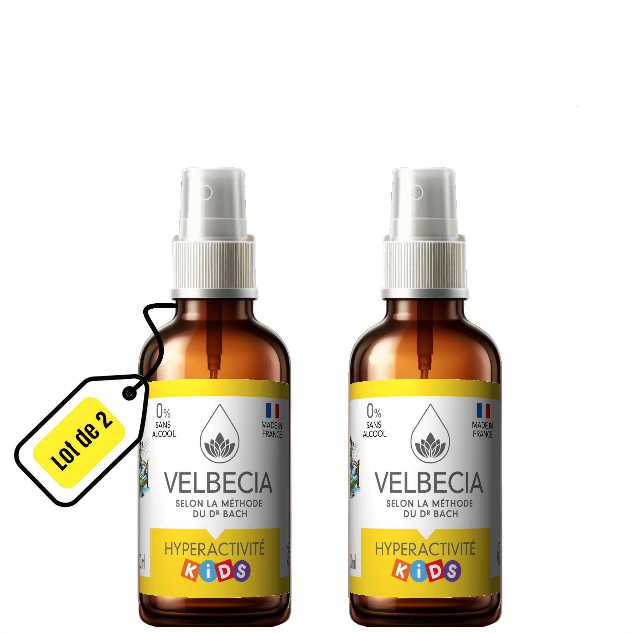 Velbecia products are not manufactured by Bach Flower Remedies Limited. BACH is a registered trademark of Bach Flower Remedies Limited and is not owned by Velbecia. Hyperactivity (ADHD) in children causes all emotions to surge, mix, and be expressed unexpectedly. Flower essences can help children remain calm in stressful situations, better organize their thoughts to avoid rushing, and improve their concentration. Thus, flower essences can help lower the sensitivity level of hyperactive children so they learn to protect themselves from environmental stimuli. Storage: For optimal preservation of your blend, you can place it at the bottom of your refrigerator. Avoid contact with any electronic devices. Directions for use: 2 sprays 4 times a day or as needed. Average duration: 30ml: 3 weeks 50ml: 5 weeks. For every 30ml bottle purchased, get one free. This alcohol-free blend helps you take a step back before acting, be more focused, better organize your time, be more attentive and less irritable, and fall asleep more easily.Les produits Velbecia ne sont pas fabriqués par Bach Flower Remedies Limited. BACH est une marque déposée de Bach Flower Remedies Limited et n'appartient pas à Velbecia. L'hyperactivité (TDAH) chez l'enfant fait que toutes les émotions fusent, se mélangent et s'expriment de façon intempestive. Les élixirs floraux peuvent aider l'enfant à garder son calme face à des situations stressantes, à mieux organiser sa pensée afin de ne pas se précipiter, à gagner en concentration. Ainsi, les élixirs floraux peuvent être une aide pour abaisser le niveau de sensibilité de l'enfant hyperactif afin qu'il apprenne à se protéger des stimuli de son environnement. Conservation : Pour une conservation optimale de votre mélange, vous pouvez le placer au bas de votre réfrigérateur. Evitez le contact avec tout objet électronique. Conseil d'utilisation : 2 pulvérisations 4 fois par jour ou lorsque vous en ressentez le besoin. Durée moyenne : 30ml : 3 semaines 50ml : 5 semaines. POUR TOUT FLACON 30ML ACHETÉ, UN FLACON OFFERT. Ce mélange SANS ALCOOL permet de prendre du recul avant d'agir, d'être plus concentré, de mieux organiser son temps, d'être plus à l'écoute et moins irritable, de mieux s'endormir.Enfant Hyperactif Agité 30 ml 1 OFFERT Elixirs de fleurs SANS ALCOOL - Méthode du Dr Bach - TDAH, turbulent, impulsif, ingérable, incontrôlable, épuisant