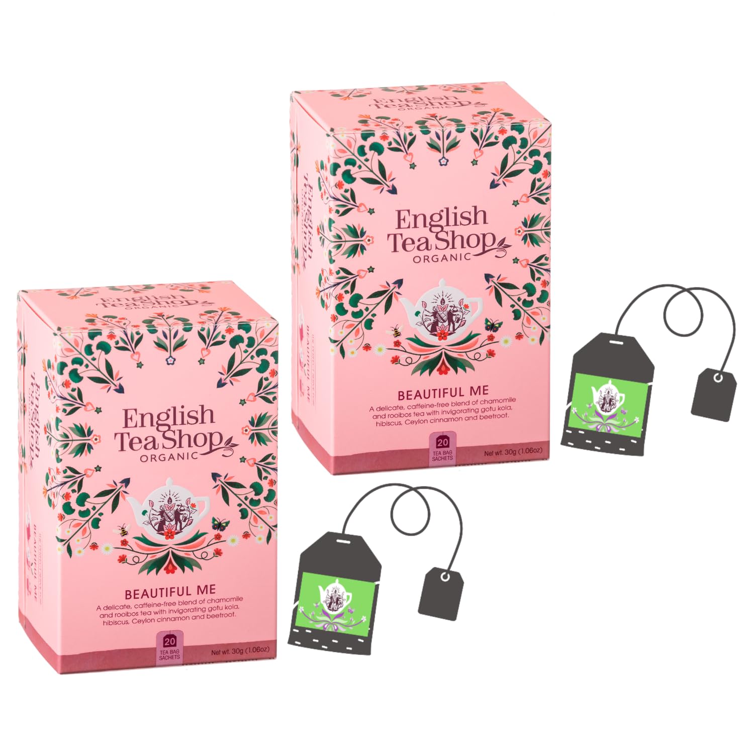 ENGLISH TEA SHOP We love good tea. Refreshing, invigorating, robust, or soothing, our love of tea permeates everything we do: from the blending in our factory in Sri Lanka to the freshly brewed cup. But tea is so much more than that. Our dynamic tea revolution celebrates our global community of farmers, blenders, and manufacturers. Together, these amazing people create our unique range of organic and fair trade teas. ORGANIC FARMING Organic farming should empower farmers and improve their quality of life. We offer support to farmers to make this a reality. Education and training for farmers and their families promotes sustainable and profitable organic farming. Going organic has had a positive impact on their lives, offering long-term contracts and professional training, creating a virtuous circle where everyone benefits. A SUSTAINABLE PRODUCT At English Tea Shop, we work closely with everyone in our value chain to make our planet a better place for all living beings. We want to help create an environmentally friendly and economically prosperous world for future generations. A world where all individuals are treated equally and have the opportunity to grow and develop. As nature lovers, we've made English Tea Shop tea bags and the inner packaging of this box fully compostable. Our tea bags are staple-free, and both the bags and the tin are recyclable. The pyramid filters are made from 100 recyclable, non-GMO polyester, recycled cardboard, vegetable-based inks, and organic, plant-based adhesives. The cotton thread is knotted to the filter and the potholder without hooks or mechanical fasteners. PRAJAVA – VALE MODEL. INGREDIENTS Organic chamomile 22.5 , organic gotu kola 21 , organic hibiscus 16 , organic cinnamon 12 , organic rooibos 9 , organic cocoa 9 , organic orange peel 5 , organic beetroot 3 , organic cranberry juice 2 , organic rose petals 0.5 . SAFETY WARNING Consume in moderation. Not suitable for children or pregnant women. Keep out of reach of children. See moreEnglish Tea Shop Tisane de beauté au Gotu Kola, Canneberges, Pétales de Rose Infusion Fruitée Bio à la Camomille et à l'Hibiscus - 2 x 20 Filtres (60 Gr)DESCRIPTION DU PRODUIT DESCRIPTION DU PRODUIT ENGLISH TEA SHOP Nous aimons le bon thé. Rafraîchissant, revigorant, robuste ou apaisant, notre amour du thé imprègne tout ce que nous faisons : du mélange dans notre usine au Sri Lanka à la tasse fraîchement infusée. Mais le thé est bien plus que cela. Notre dynamique révolution du thé célèbre notre communauté mondiale d'agriculteurs, de mélangeurs et de fabricants. Ensemble, ces personnes formidables créent notre gamme unique de thés biologiques et équitables. AGRICULTURE BIOLOGIQUE L'agriculture biologique devrait responsabiliser les agriculteurs et améliorer leur qualité de vie. Nous proposons un soutien aux agriculteurs pour faire de cela une réalité. Éducation et formation des agriculteurs et de leurs familles promouvant une agriculture BIO durable et rentable. Se lancer dans le bio a permis d'avoir un impact positif sur leur vie, en proposant des contrats à long terme et des formations au métier, en créant un cercle vertueux dans lequel tous les acteurs sont gagnants. UN PRODUIT DURABLE Chez English Tea Shop, nous travaillons en étroite collaboration avec tous les acteurs de notre chaîne de valeur pour faire de notre planète un endroit meilleur pour tous les êtres vivants. Nous voulons participer à la création d'un monde respectueux de l'environnement et économiquement prospère pour les générations à venir. Un monde où tous les individus sont traités sur un pied d'égalité et ont la possibilité de grandir et de se développer. En tant que fans de Dame Nature, nous avons créé les sachets de thé English Tea Shop et l'emballage interne de cette boîte entièrement compostables. Nos sachets de thé sont sans agrafes, les sachets et les canettes sont recyclables. Les filtres pyramides sont composés de polyester 100 recyclable et sans OGM, de carton recyclé, d'encres d'origine végétale, de colles organiques d'origine végétale. Le fil de coton est noué au filtre et à la manique sans crochets ni fixations mécaniques. PRAJAVA – MODÈLE DE VALE. INGRÉDIENTS Camomille bio 22,5 , gotu kola bio 21 , hibiscus bio 16 , cannelle bio 12 , rooibos bio 9 , cacao bio 9 , écorce d'orange bio 5 , betterave rouge bio 3 , jus de canneberge bio 2 , pétales de rose bio 0,5 . AVERTISSEMENT DE SÉCURITÉ A consommer avec modération. Ne convient pas pour les enfants ou les femmes enceintes. Tenir hors de portée des enfants. Voir plus