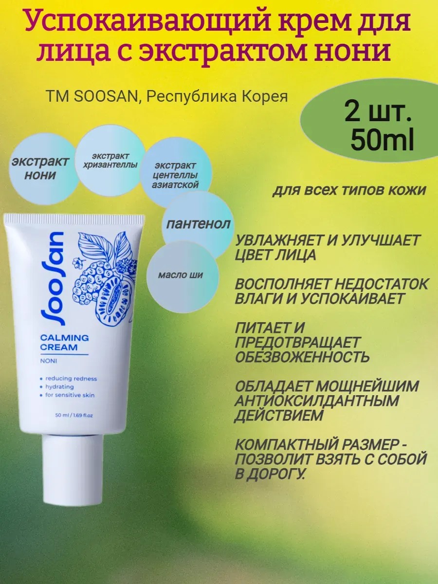 Крем для лица с экстрактом нони обладает успокаивающим действием, восполняет недостаток влаги и борется с обезвоженностью. Экстракт нони насыщен множеством витаминов, обладает мощнейшим антиоксидантным действием, тонизирует и улучшает цвет лица. Пантенол снимает покраснения и раздражение. Благодаря компактному формату крем удобно брать с собой. Рекомендуем использовать крем лица, в составе комплексной терапии с Тоником, сывороткой и мистом для лица. А еще это замечательный подарок для мамы или подруги на праздник. Обратите внимание на косметические наборы, которые продаются в нашем магазине. Там вы найдете полный комплексный уход за лицом и телом. Косметика. Корейская косметика. Подарок на 8 марта. подарок маме. подарок подруге.
