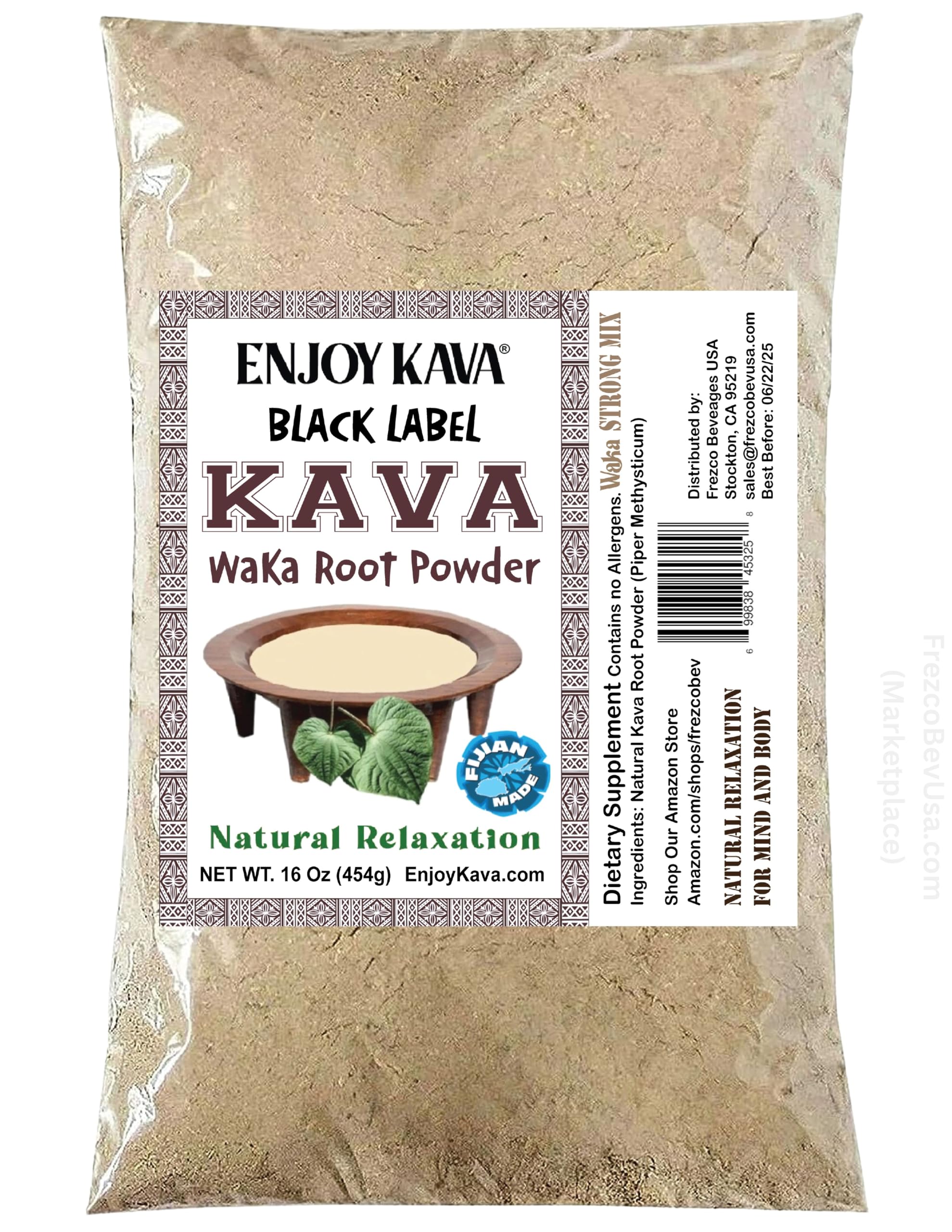 Enjoy Kava- It is a noble cultivar known as loa waka in Fiji. This kava comes straight from a group of farmers situated in the South of the Island of Fiji. The flavor profile of this kava is between mild and peppery yet it is significantly potent. This kava is greatly enjoyed by the locals in Fiji and is a tongue twister. The kava is harvested at 3-4 years old, is meticulously pressure washed, sun dried and finely milled into powder. Enjoy Kava - Noble Kava Root Powder (16 Oz Bag) Herbal Supplement Kava Drink IMPORTED FROM FIJI. Enjoy Kava - Noble Kava Root Powder (16 Oz Bag) Herbal Supplement Kava Drink . Black Label.