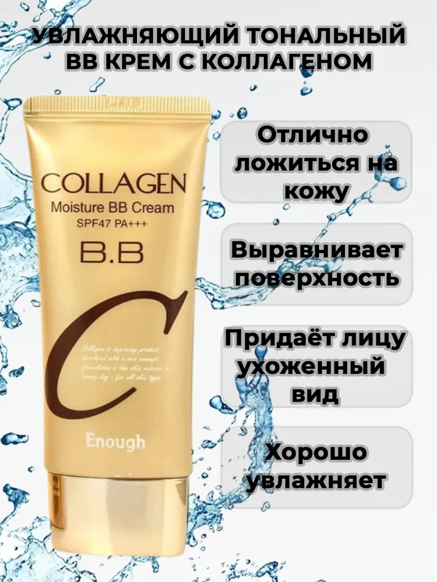 BB крем от Enough, имеющий высокую степень защиты от УФ-лучей, оберегает кожу от фото-старения. Крем обладает хорошей кроющей способностью, отлично ложится на кожу и подстраивается под ее тон. Заполняя морщинки, крем выравнивает поверхность кожи, придает лицу свежий, ухоженный вид. Благодаря гиалуроновой кислоте и морскому коллагену, кожа становится увлажненной, упругой, эластичной. Ключевой компонент - морской коллаген, который является надежным помощником в разглаживании морщин, обладает способностью укреплять и подтягивать кожу, оказывает лифтинговое действие. Притягивая и удерживая влагу, коллаген оказывает увлажняющее действие, благодаря чему кожа смягчается, становится более эластичной и разглаженной. Оттенок - натуральный беж. Состав указан в вопросах.